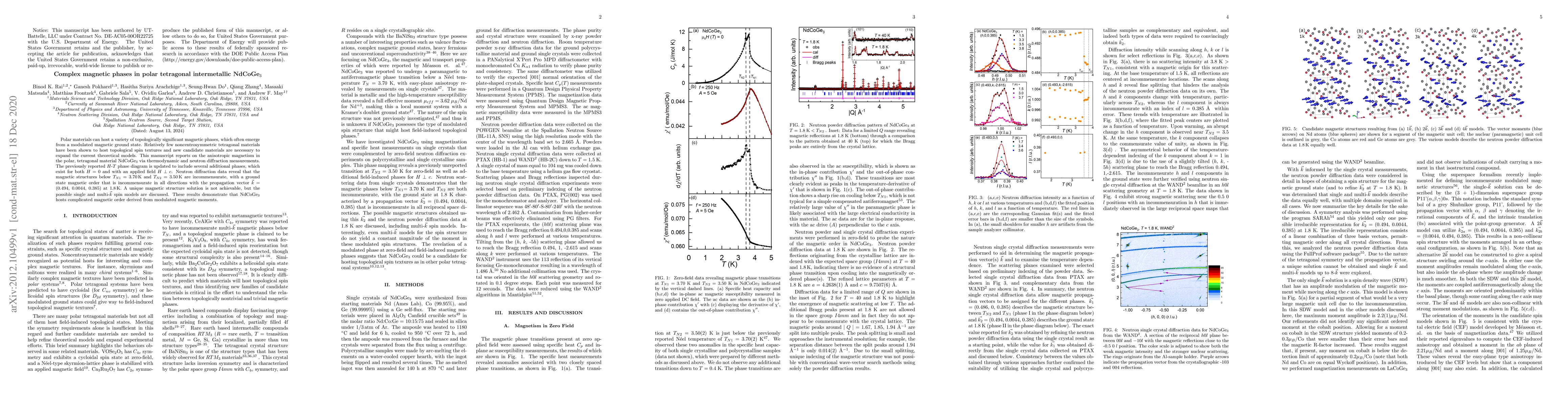 Researchers discovered complex magnetic phases in NdCoGe3, a polar tetragonal material, using thermodynamic and neutron diffraction measurements. The findings reveal intricate magnetic order derived from modulated moments.