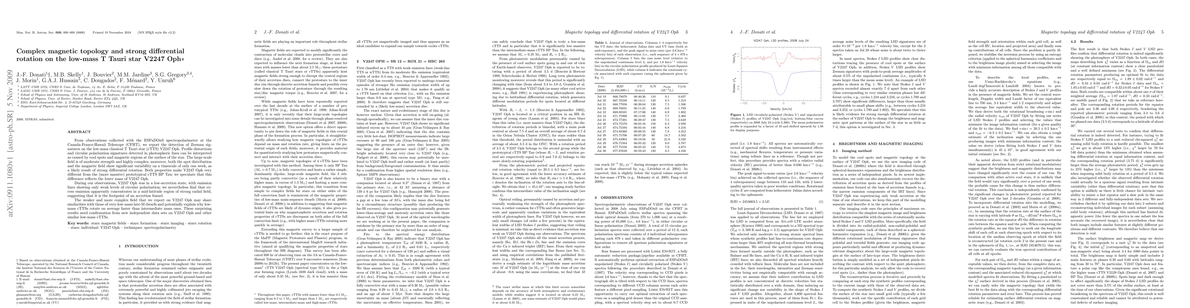 From observations collected with the ESPaDOnS spectropolarimeter at the Canada-France-Hawaii Telescope, we report the detection of Zeeman signatures on the low-mass classical TTauri star (cTTS) V2247Oph. Profile distortions and circular polarisation signatures detected in photospheric lines can be interpreted as caused by cool spots and magnetic regions at the surface of the star. The large-scale field is of moderate strength and highly complex; moreover, both the spot distribution and the magnetic field show significant variability on a timescale of only one week, as a likely result of strong differential rotation. Both properties make V2247Oph very different from the (more massive) prototypical cTTS BPTau; we speculate that this difference reflects the lower mass of V2247Oph. During our observations, V2247Oph was in a low-accretion state, with emission lines showing only weak levels of circular polarisation; we nevertheless find that excess emission apparently concentrates in a mid-latitude region of strong radial field, suggesting that it is the footpoint of an accretion funnel. The weaker and more complex field that we report on V2247Oph may share similarities with those of very-low-mass late-M dwarfs and potentially explain why low-mass cTTSs rotate on average faster than intermediate mass ones. These surprising results need confirmation from new independent data sets on V2247Oph and other similar low-mass cTTSs.