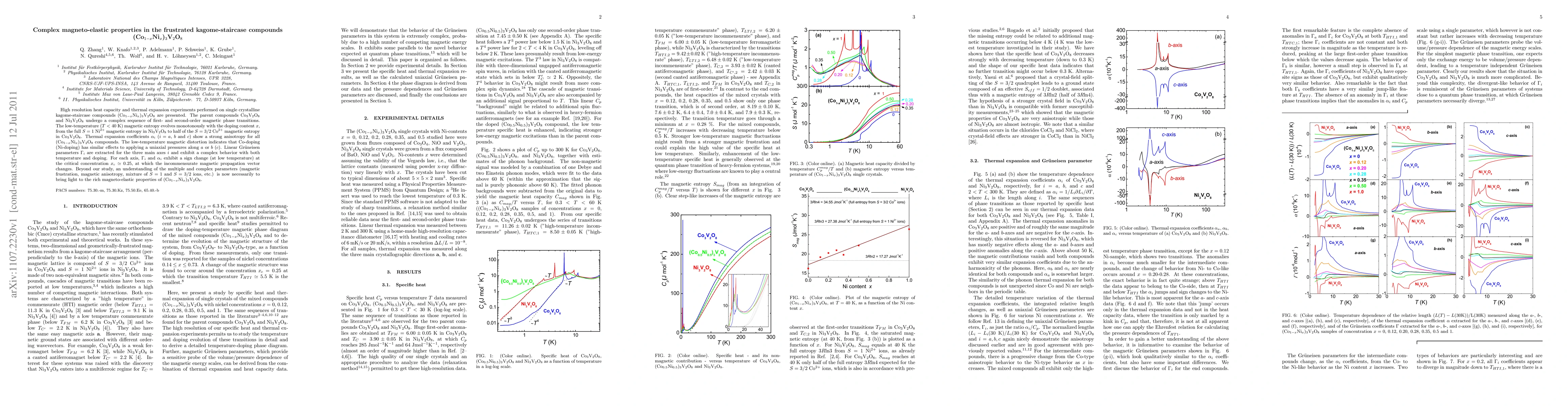This study investigates the magneto-elastic properties of the kagome-staircase compounds (Co$_{1-x}$Ni$_x$)$_3$V$_2$O$_8$ through high-resolution heat capacity and thermal expansion experiments. The research reveals a complex interplay between magnetic phase transitions and thermal expansion anisotropy, with a critical doping concentration $x_c\simeq0.25$ marking significant changes in magnetic distortion and Grüneisen parameters.