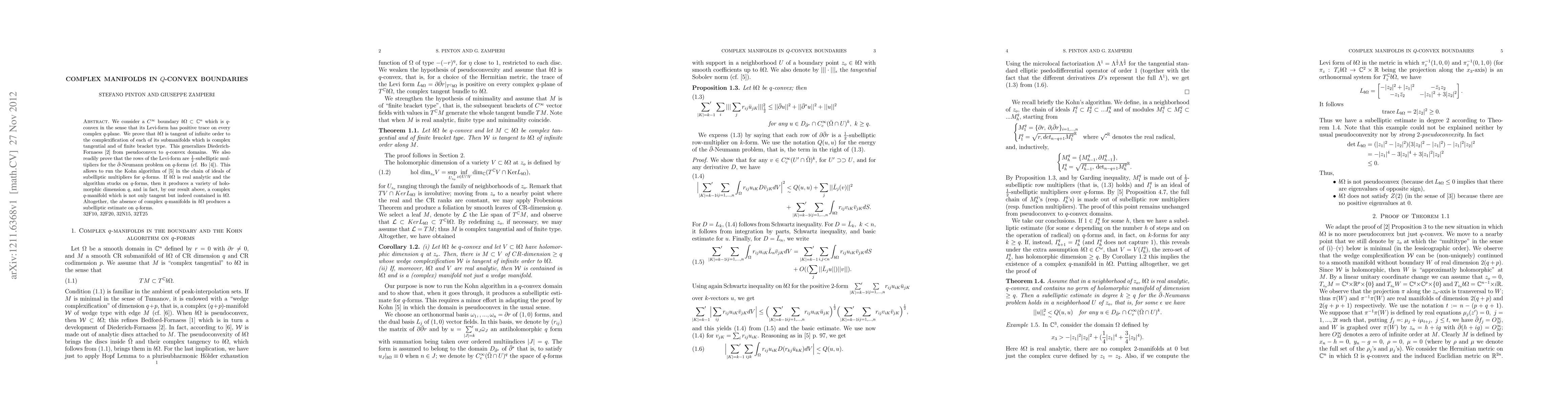 This paper proves that a smooth boundary that is q-convex is tangent of infinite order to the complexification of its submanifolds. It generalizes previous results from pseudoconvex to q-convex domains and establishes subelliptic multipliers for the di-bar-Neumann problem on q-forms, allowing the Kohn algorithm to be applied.