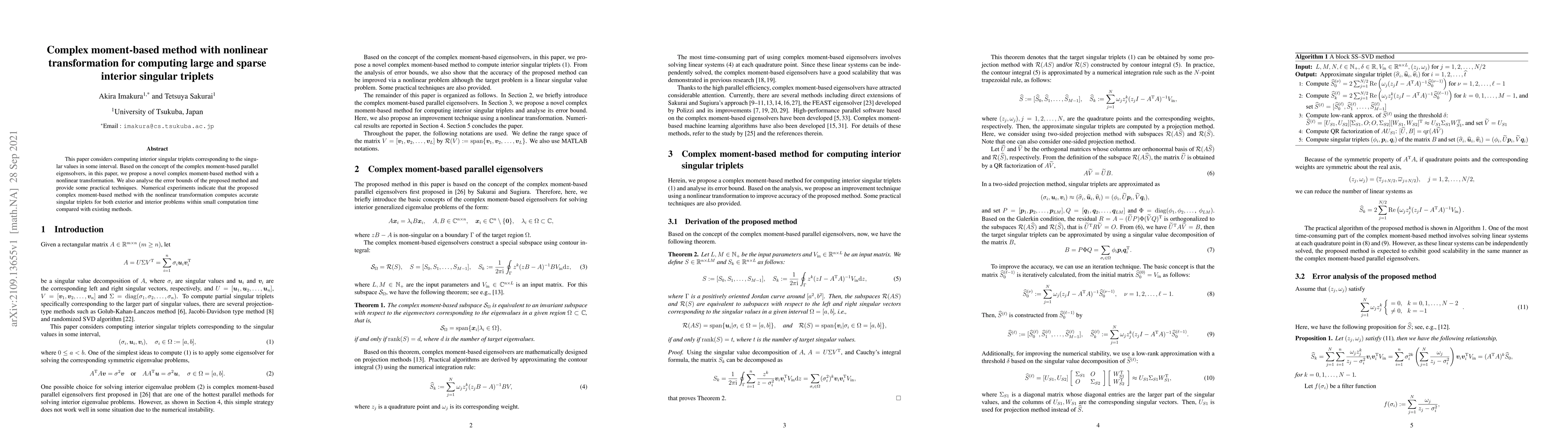 This paper proposes a novel complex moment-based method with a nonlinear transformation for computing large and sparse interior singular triplets, offering improved accuracy and efficiency over existing methods, as demonstrated by numerical experiments. The method's error bounds are analyzed and practical techniques are provided for implementation.