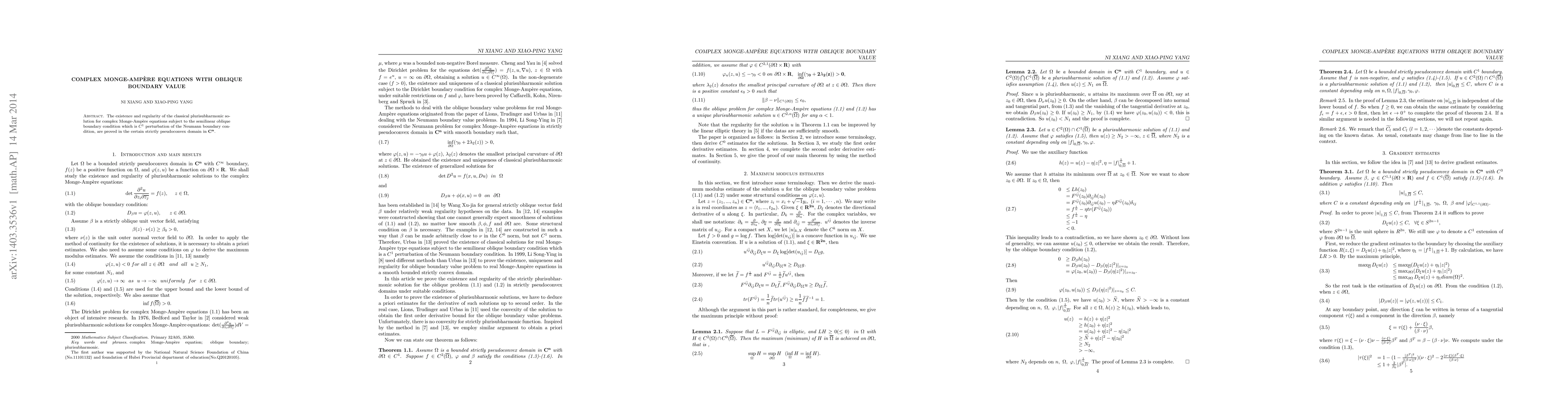 The existence and regularity of the classical plurisubharmonic solution for complex Monge-Amp\`ere equations subject to the semilinear oblique boundary condition which is C^1 perturbation of the Neumann boundary condition, are proved in the certain strictly pseudoconvex domain in C^n.