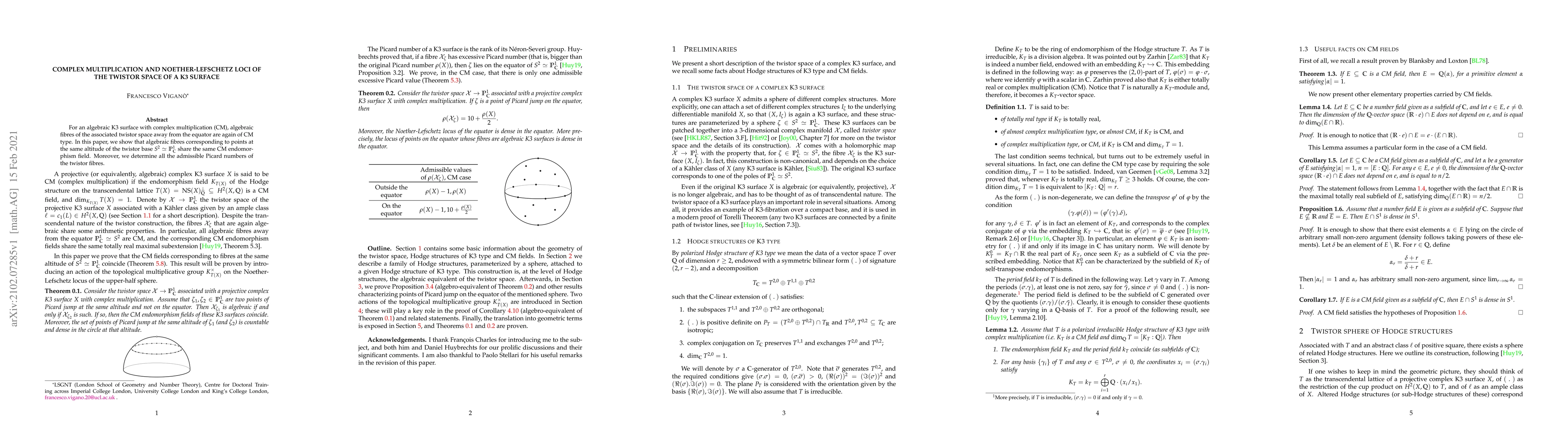 For an algebraic K3 surface with complex multiplication (CM), algebraic fibres of the associated twistor space away from the equator are again of CM type. In this paper, we show that algebraic fibres corresponding to points at the same altitude of the twistor base $S^2\simeq \mathbb{P}^1_\mathbb{C}$ share the same CM endomorphism field. Moreover, we determine all the admissible Picard numbers of the twistor fibres.