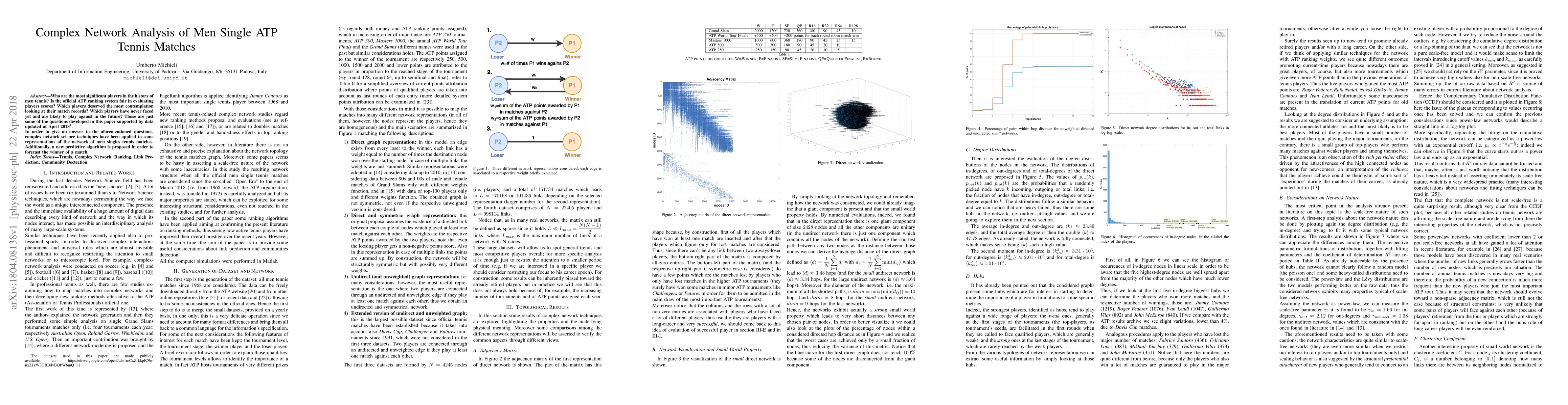 This paper uses complex network analysis on men's singles tennis match data to identify significant players, evaluate the ATP ranking system, and predict future match outcomes. It proposes a new predictive algorithm based on network science techniques.