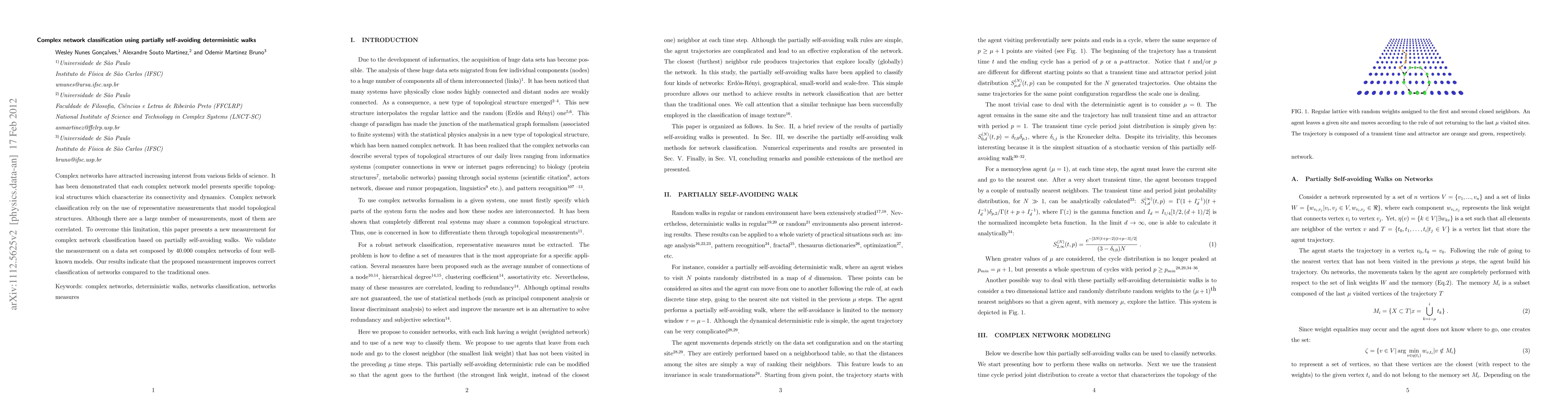 A new method for classifying complex networks is proposed using partially self-avoiding deterministic walks, improving correct classification compared to traditional methods.