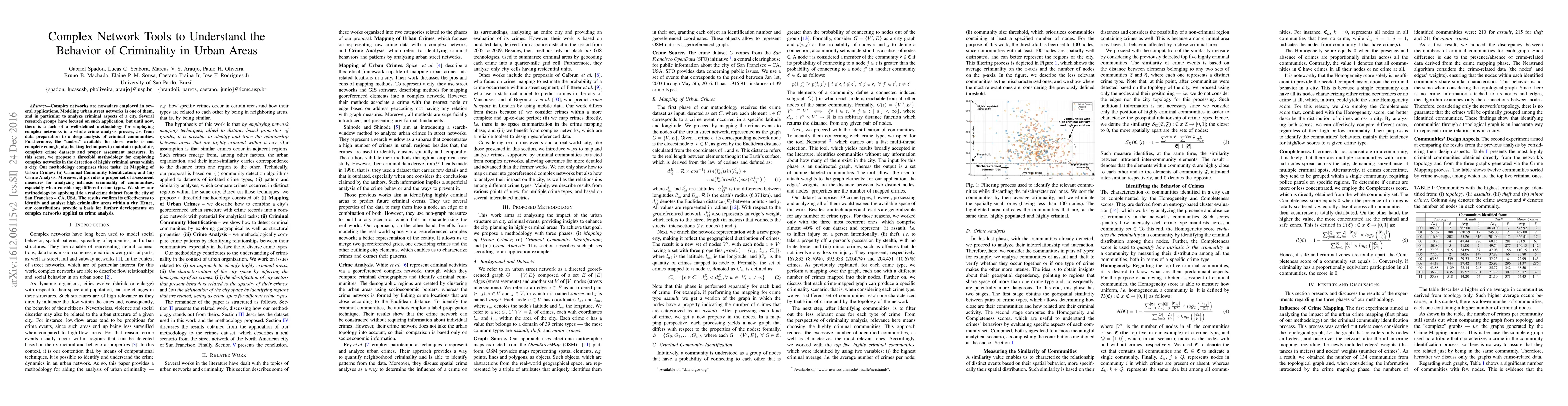 This paper proposes a comprehensive methodology for analyzing urban crime using complex networks, comprising crime mapping, community identification, and crime analysis tasks. The methodology includes assessment measures for evaluating intrinsic criminality and is demonstrated through its application to San Francisco's crime data, showing effectiveness in identifying high-crime areas.