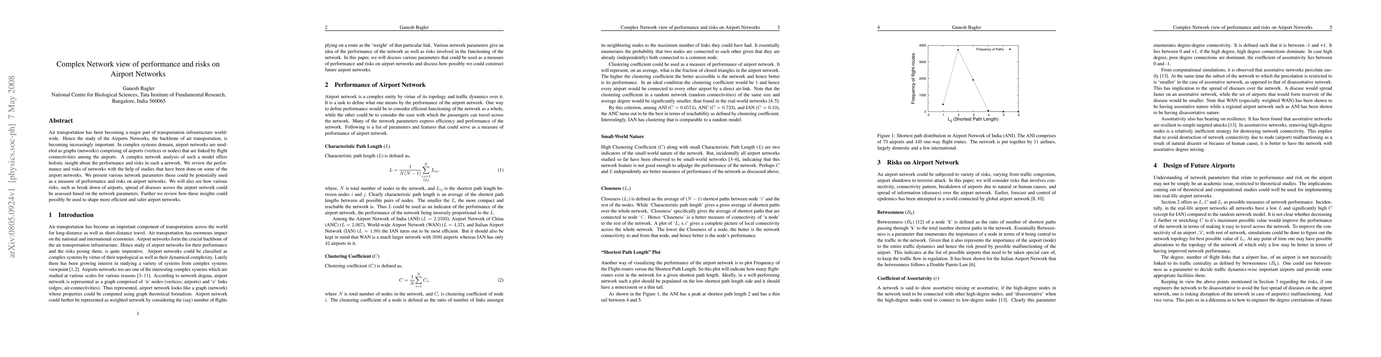 This paper examines airport networks as complex systems, analyzing performance and risks through network parameters. It reviews existing studies to identify metrics for assessing risks like airport failures and disease spread, aiming to improve the efficiency and safety of airport networks.