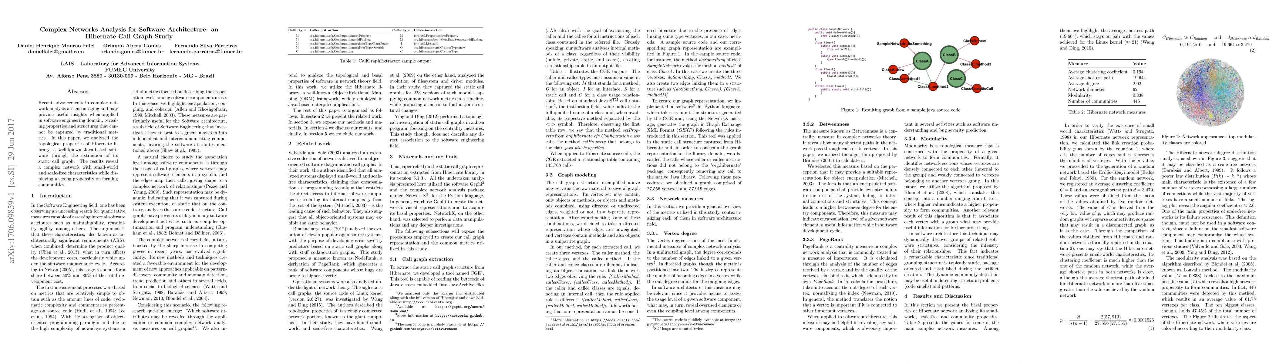 This paper applies complex network analysis to the Hibernate library's static call graph, uncovering its small-world and scale-free properties, and highlighting the formation of distinct communities within the network. Traditional metrics fall short in capturing these intricate structures.