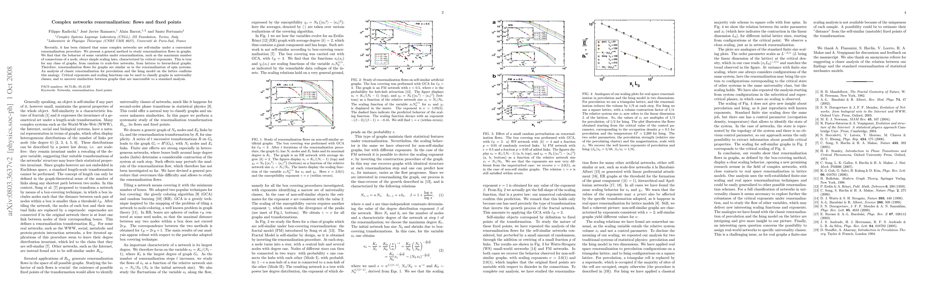This paper introduces a method to study renormalization flows in complex networks, revealing that variables like maximum node connections follow scaling laws with critical exponents. This approach allows classification of graphs into universality classes, uncovering similarities between different network types.