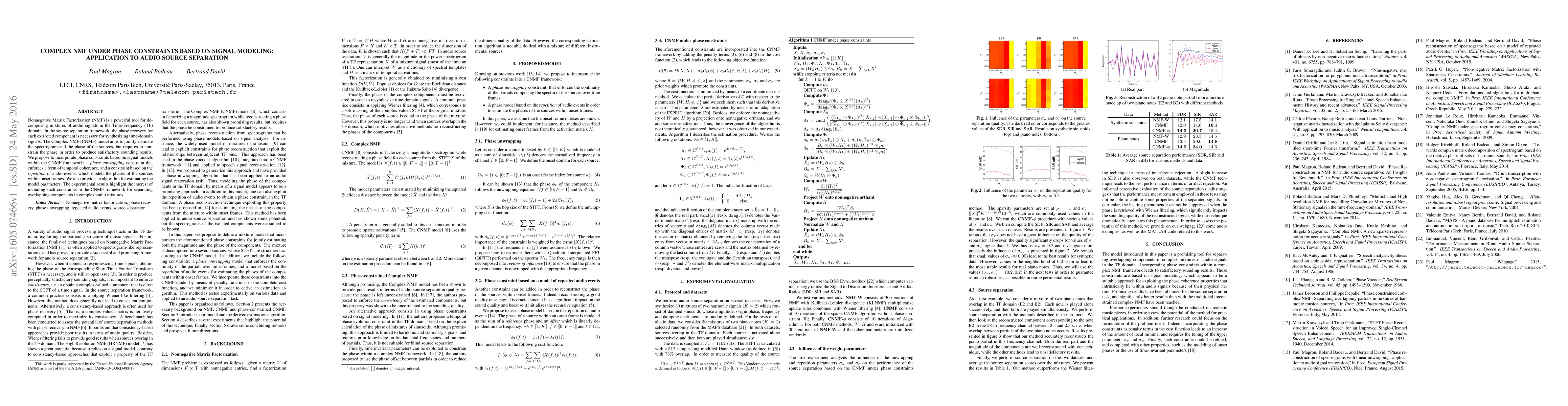 This paper proposes a Complex NMF (CNMF) model with phase constraints based on signal modeling to improve audio source separation. The approach includes phase unwrapping and repetition constraints to enhance temporal coherence and model phase repetitions in audio events, leading to better separation of overlapping audio components.
