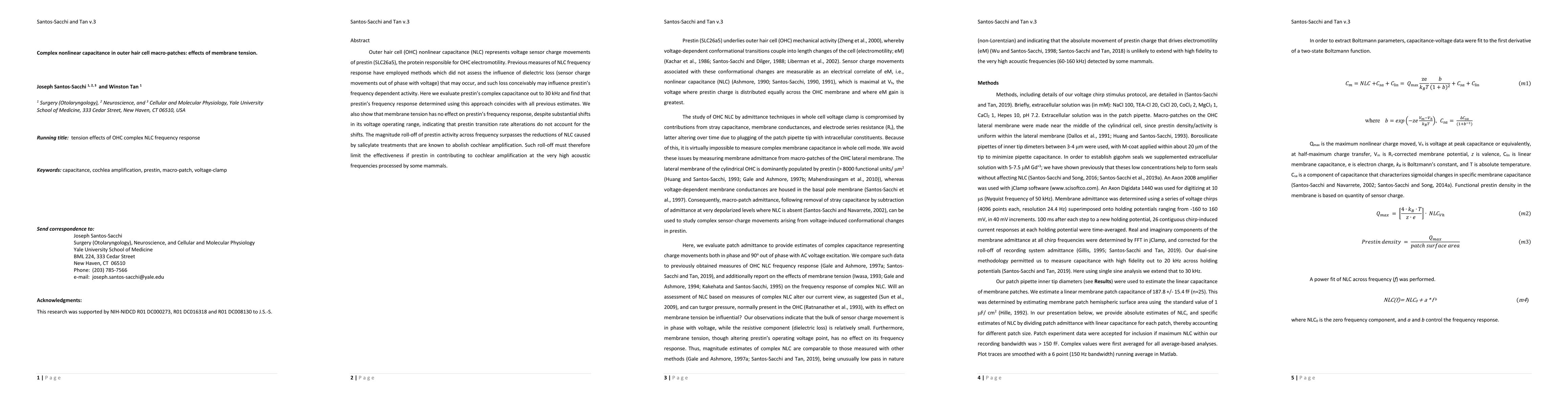 This study investigates the complex nonlinear capacitance of outer hair cells, revealing that membrane tension does not affect the frequency response of prestin, despite altering its voltage operating range. The findings suggest that prestin's activity roll-off at high frequencies limits its contribution to cochlear amplification.
