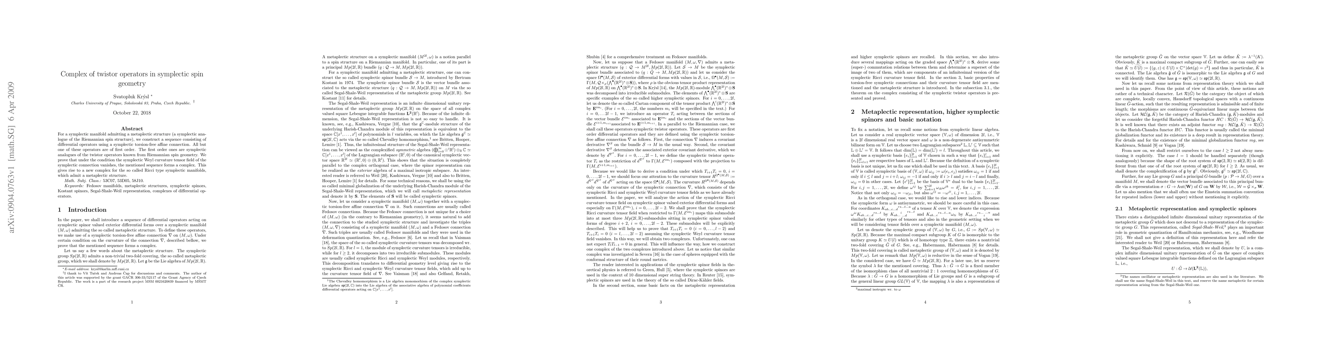 This paper constructs a sequence of differential operators on symplectic manifolds with metaplectic structures, analogous to twistor operators in Riemannian spin geometry. It proves that under the condition of vanishing symplectic Weyl curvature, these operators form a complex, providing a new complex for Ricci type symplectic manifolds.