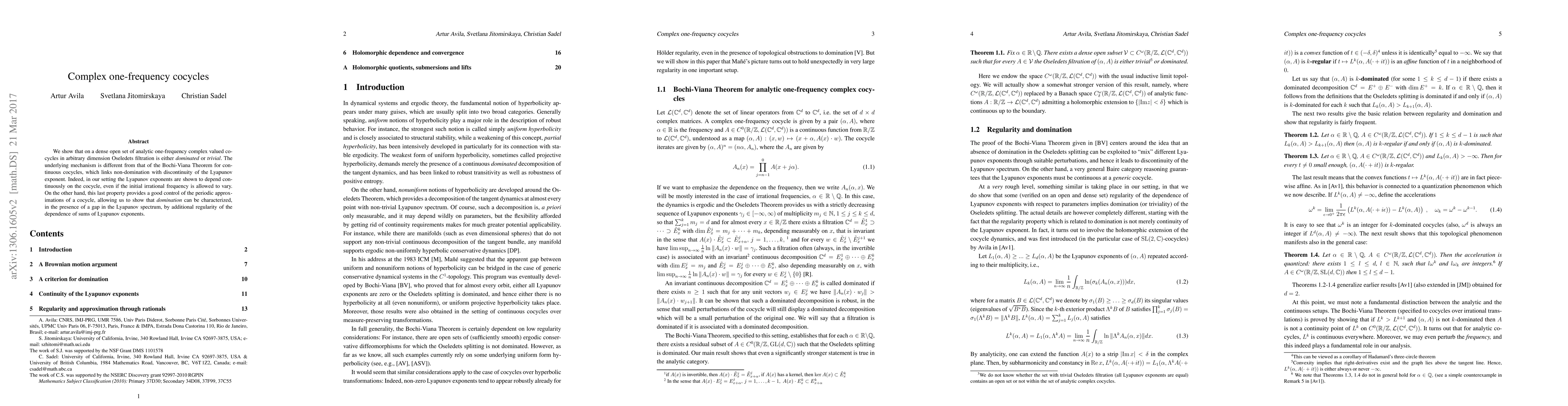 Research shows that a dense set of analytic one-frequency complex-valued cocycles in arbitrary dimension have either dominated or trivial Oseledets filtration, depending on their Lyapunov exponents.