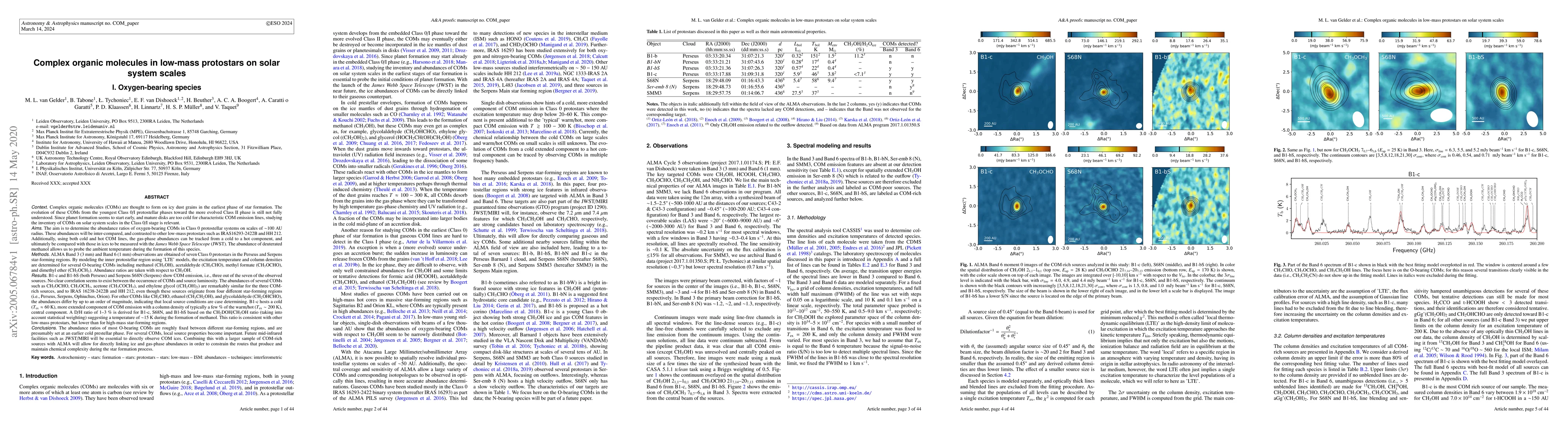 This paper investigates complex organic molecules (COMs) in low-mass protostars using ALMA observations, revealing that three out of seven Class 0/I protostars exhibit COM emission. The study finds similar abundances of certain COMs across different sources, suggesting local conditions influence their formation.