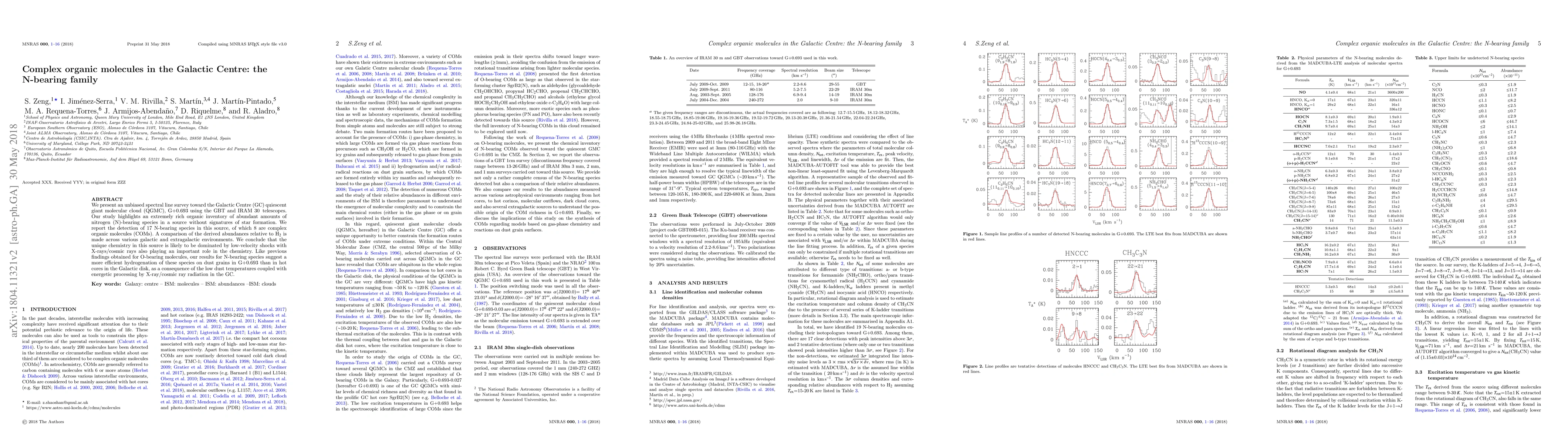 We present an unbiased spectral line survey toward the Galactic Centre (GC) quiescent giant molecular cloud (QGMC), G+0.693 using the GBT and IRAM 30$\,$ telescopes. Our study highlights an extremely rich organic inventory of abundant amounts of nitrogen (N)-bearing species in a source without signatures of star formation. We report the detection of 17 N-bearing species in this source, of which 8 are complex organic molecules (COMs). A comparison of the derived abundances relative to H$_2$ is made across various galactic and extragalactic environments. We conclude that the unique chemistry in this source is likely to be dominated by low-velocity shocks with X-rays/cosmic rays also playing an important role in the chemistry. Like previous findings obtained for O-bearing molecules, our results for N-bearing species suggest a more efficient hydrogenation of these species on dust grains in G+0.693 than in hot cores in the Galactic disk, as a consequence of the low dust temperatures coupled with energetic processing by X-ray/cosmic ray radiation in the GC.