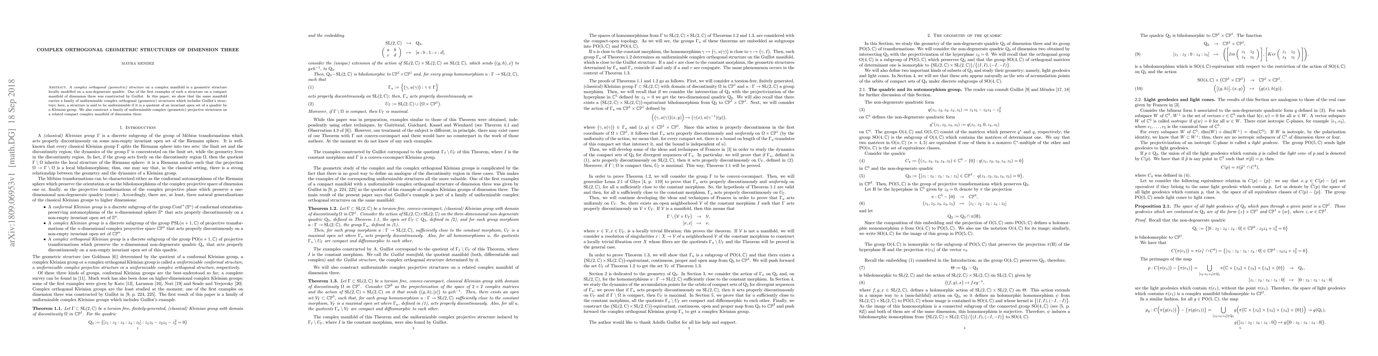Researchers constructed a family of uniformizable complex orthogonal geometric structures on a three-dimensional compact manifold, expanding on Guillot's initial example.
