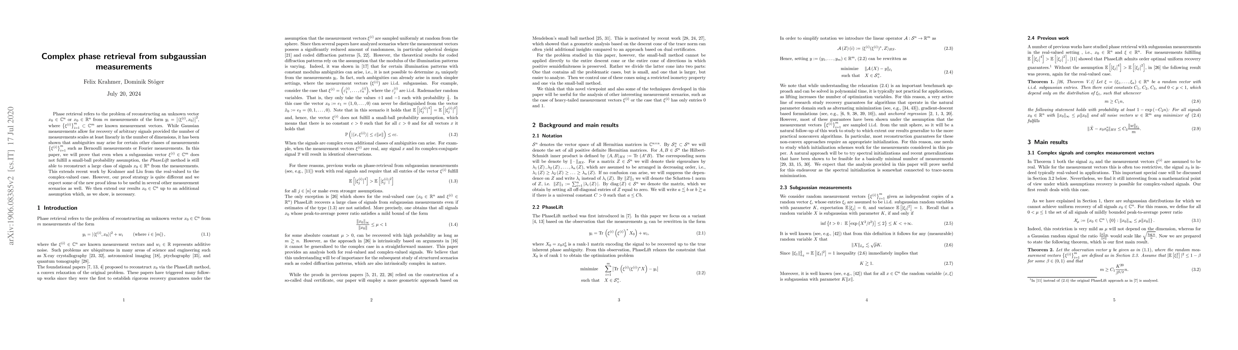 Phase retrieval refers to the problem of reconstructing an unknown vector $x_0 \in \mathbb{C}^n$ or $x_0 \in \mathbb{R}^n $ from $m$ measurements of the form $y_i = \big\vert \langle \xi^{\left(i\right)}, x_0 \rangle \big\vert^2 $, where $ \left\{ \xi^{\left(i\right)} \right\}^m_{i=1} \subset \mathbb{C}^m $ are known measurement vectors. While Gaussian measurements allow for recovery of arbitrary signals provided the number of measurements scales at least linearly in the number of dimensions, it has been shown that ambiguities may arise for certain other classes of measurements $ \left\{ \xi^{\left(i\right)} \right\}^{m}_{i=1}$ such as Bernoulli measurements or Fourier measurements. In this paper, we will prove that even when a subgaussian vector $ \xi^{\left(i\right)} \in \mathbb{C}^m $ does not fulfill a small-ball probability assumption, the PhaseLift method is still able to reconstruct a large class of signals $x_0 \in \mathbb{R}^n$ from the measurements. This extends recent work by Krahmer and Liu from the real-valued to the complex-valued case. However, our proof strategy is quite different and we expect some of the new proof ideas to be useful in several other measurement scenarios as well. We then extend our results $x_0 \in \mathbb{C}^n $ up to an additional assumption which, as we show, is necessary.