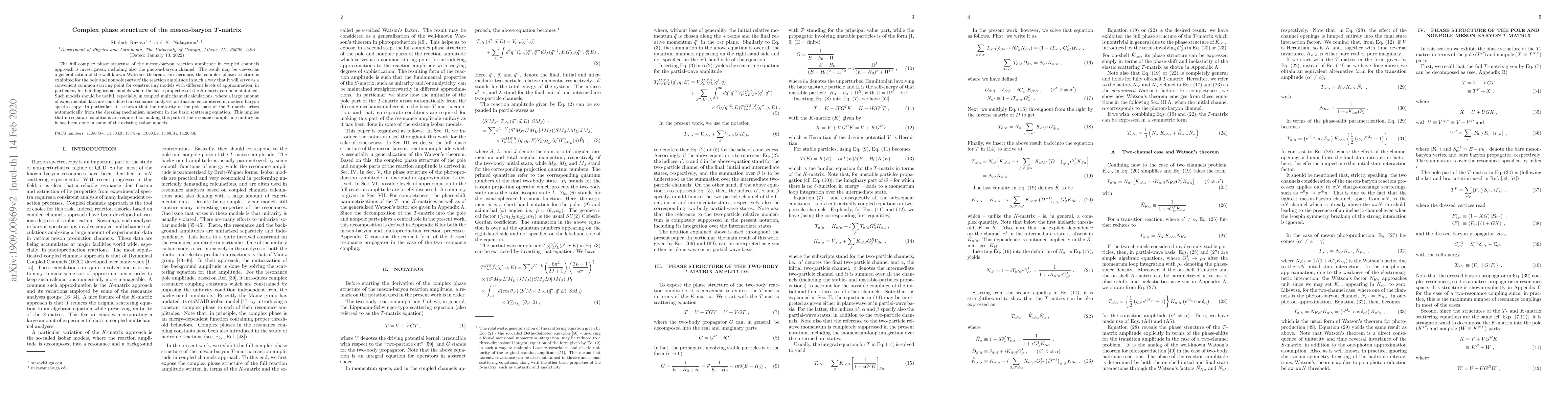 The full complex phase structure of the meson-baryon reaction amplitude in coupled channels approach is investigated, including also the photon-baryon channel. The result may be viewed as a generalization of the well-known Watson's theorem. Furthermore, the complex phase structure is exhibited for the pole and nonpole parts of the reaction amplitude in such a way that it will serve as a convenient common starting point for constructing models with different levels of approximation, in particular, for building isobar models where the basic properties of the $S$-matrix can be maintained. Such models should be useful, especially, in coupled multichannel calculations, where a large amount of experimental data are considered in resonance analyses, a situation encountered in modern baryon spectroscopy. In particular, it is shown that the unitarity of the pole part of the $T$-matrix arises automatically from the dressing mechanism inherent in the basic scattering equation. This implies that no separate conditions are required for making this part of the resonance amplitude unitary as it has been done in some of the existing isobar models.