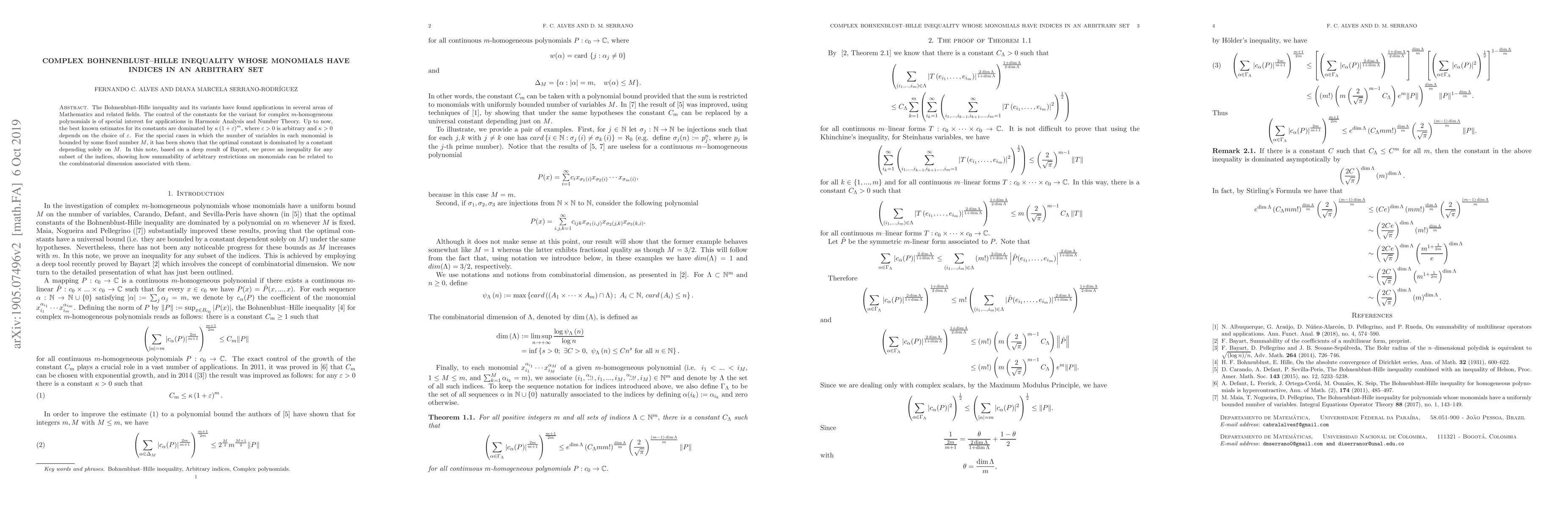 The Bohnenblust-Hille inequality and its variants have found applications in several areas of Mathematics and related fields. The control of the constants for the variant for complex $m$-homogeneous polynomials is of special interest for applications in Harmonic Analysis and Number Theory. Up to now, the best known estimates for its constants are dominated by $\kappa\left(1+\varepsilon\right) ^{m}$, where $\varepsilon>0$ is arbitrary and $\kappa>0$ depends on the choice of $\varepsilon$. For the special cases in which the number of variables in each monomial is bounded by some fixed number $M$, it has been shown that the optimal constant is dominated by a constant depending solely on $M$. In this note, based on a deep result of Bayart, we prove an inequality for any subset of the indices, showing how summability of arbitrary restrictions on monomials can be related to the combinatorial dimension associated with them.