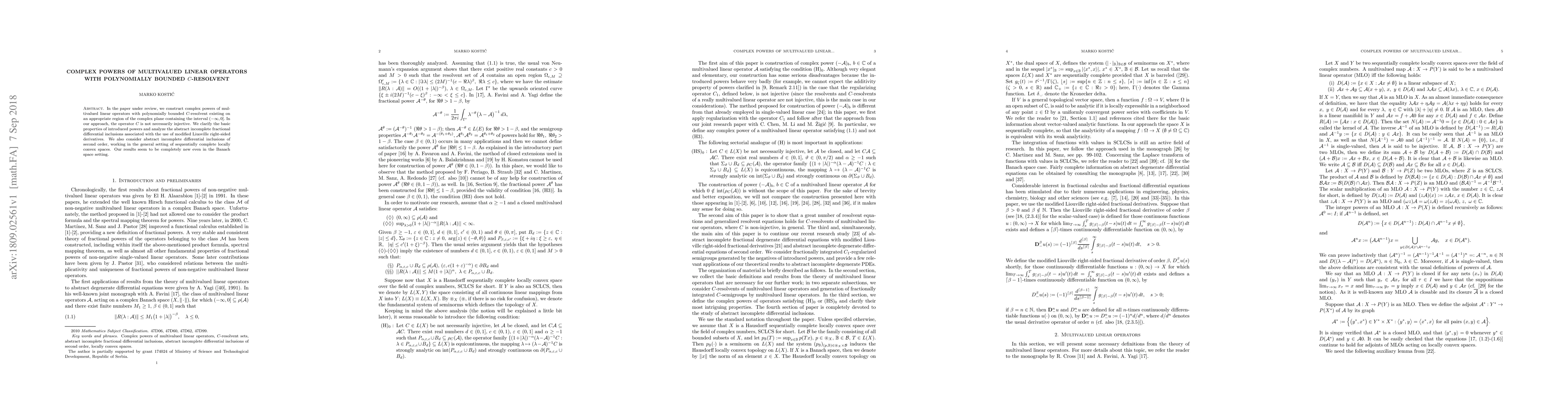 This paper constructs complex powers of multivalued linear operators with polynomially bounded $C$-resolvent, providing new insights into incomplete fractional differential inclusions and abstract second-order differential inclusions.