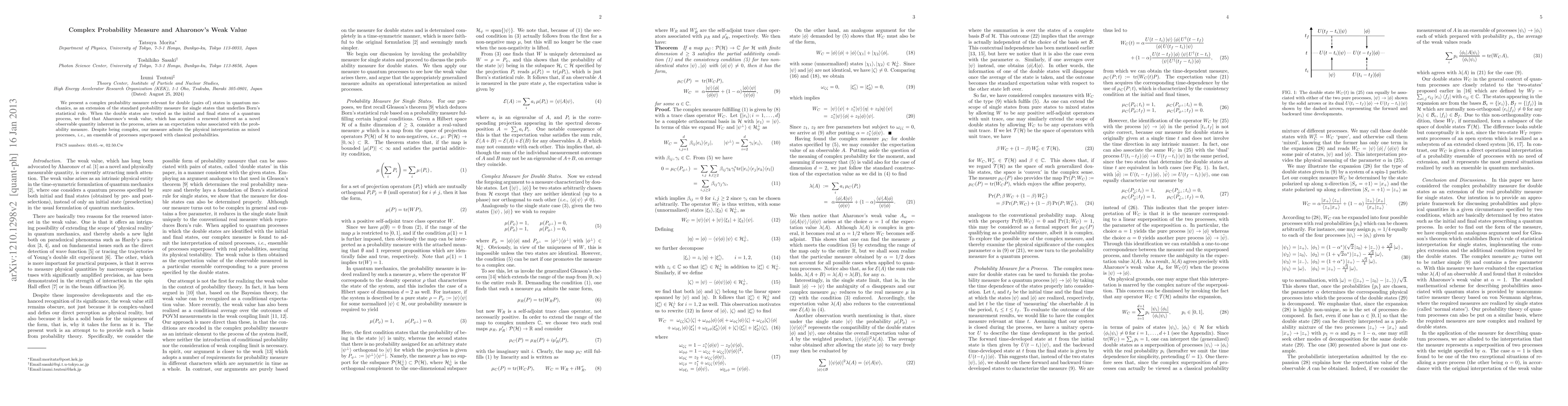 This paper introduces a complex probability measure for double states in quantum mechanics, extending the standard probability measure for single states. It shows that Aharonov's weak value emerges as an expectation value associated with this new measure, providing a physical interpretation of mixed processes as an ensemble of superposed classical probabilities.