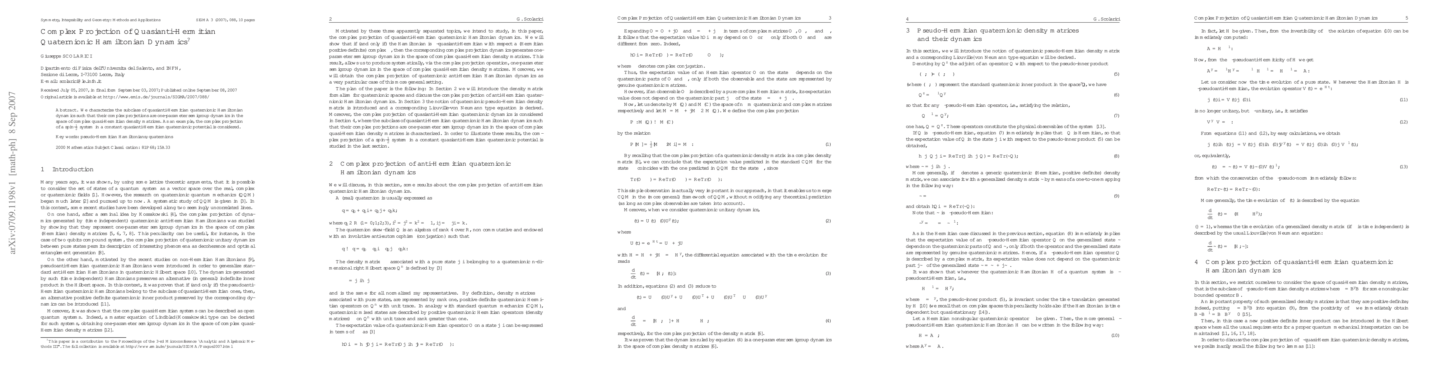 This paper characterizes a specific type of quasianti-Hermitian quaternionic Hamiltonian dynamics that project to one-parameter semigroup dynamics in complex quasi-Hermitian density matrices, with implications for spin-1/2 systems.
