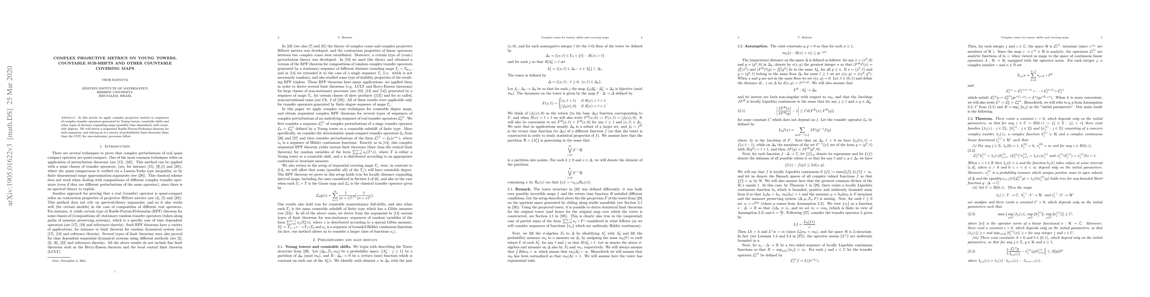 This paper applies complex projective metrics to complex transfer operators from Young towers, countable shifts, and other countable covering maps, deriving a sequential Ruelle-Perron-Frobenius theorem and using it to establish probabilistic limit theorems for non-stationary processes.