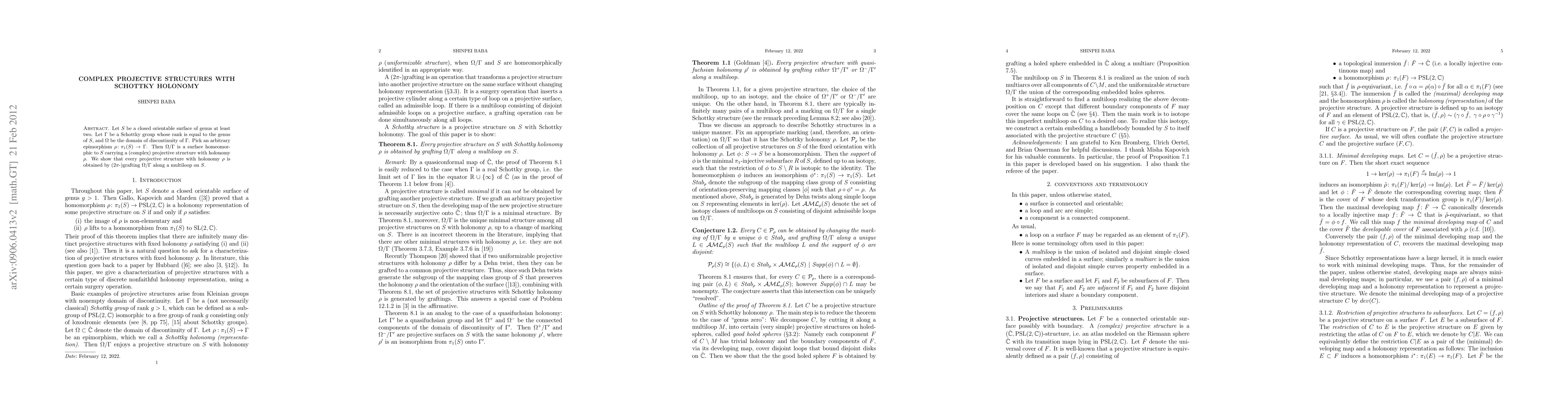 The paper investigates complex projective structures associated with Schottky groups in PSL(2, C), demonstrating that any projective structure with the same holonomy representation can be derived by grafting a basic structure onto an open hyperbolic handlebody.