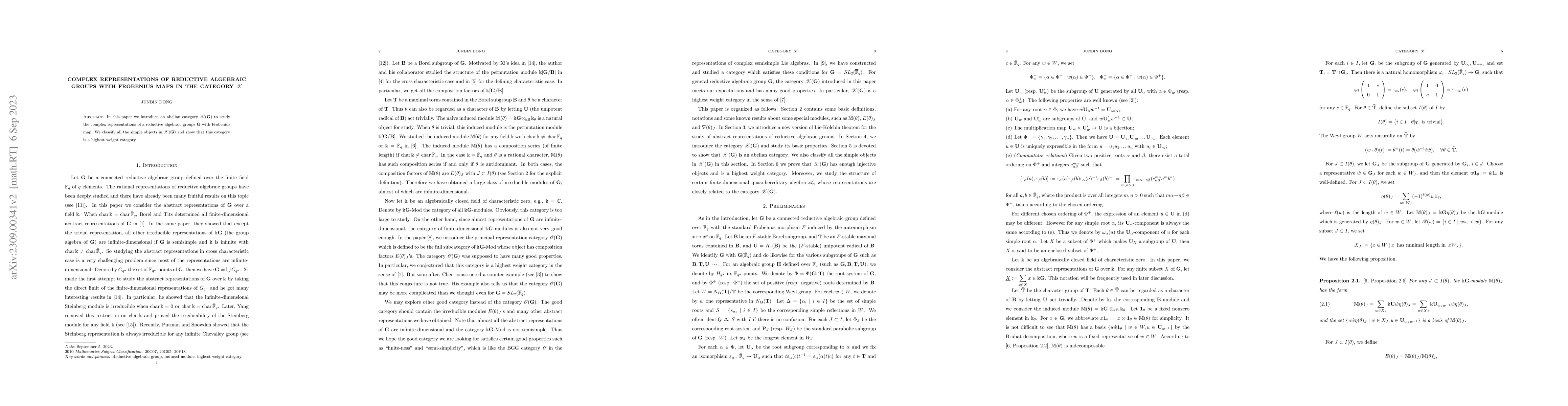 This paper introduces an abelian category $\mathscr{X}(\bf G)$ to study complex representations of reductive algebraic groups $\bf G$ with Frobenius maps, classifies its simple objects, and demonstrates that it is a highest weight category.