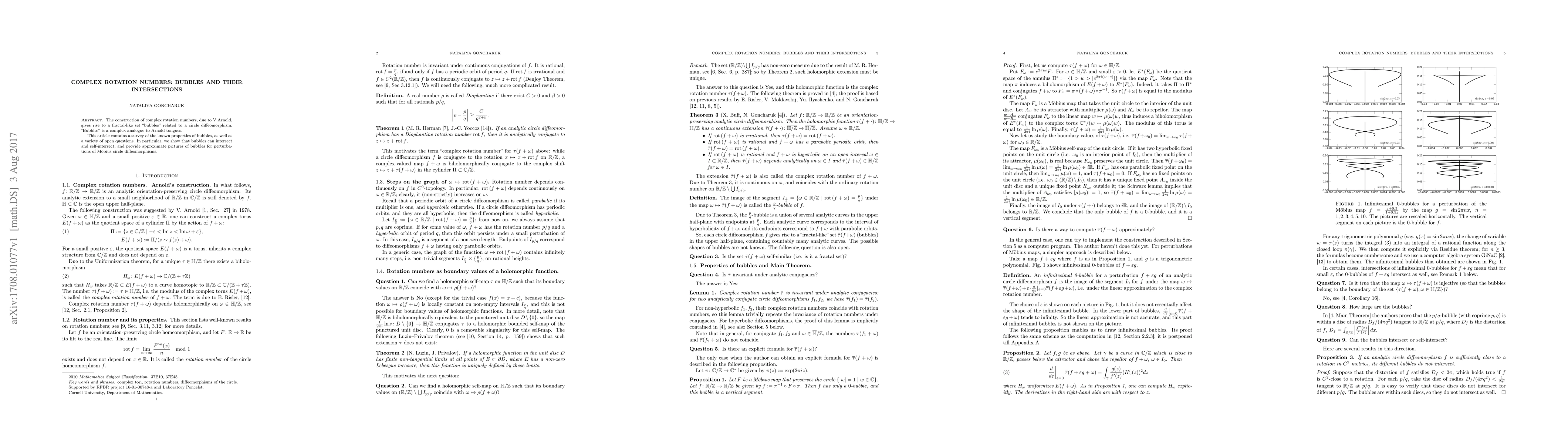 This paper explores complex rotation numbers and their associated 'bubbles' fractal set, revealing that bubbles can intersect and self-intersect. It provides visual approximations for bubble formations in perturbations of Möbius circle diffeomorphisms, posing several open questions in the field.
