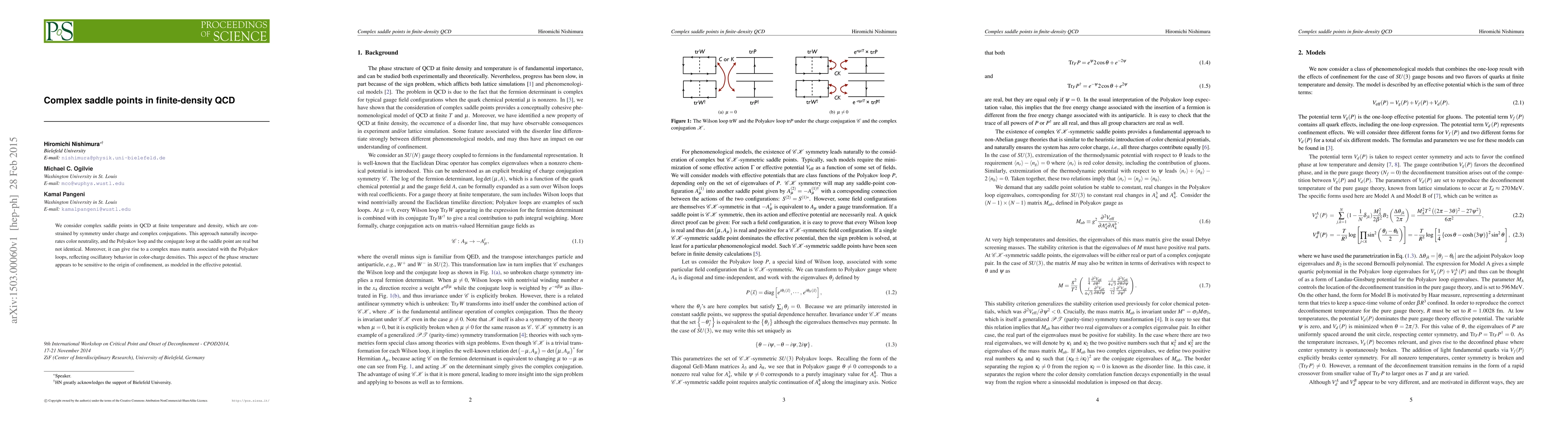 We consider complex saddle points in QCD at finite temperature and density, which are constrained by symmetry under charge and complex conjugations. This approach naturally incorporates color neutrality, and the Polyakov loop and the conjugate loop at the saddle point are real but not identical. Moreover, it can give rise to a complex mass matrix associated with the Polyakov loops, reflecting oscillatory behavior in color-charge densities. This aspect of the phase structure appears to be sensitive to the origin of confinement, as modeled in the effective potential.