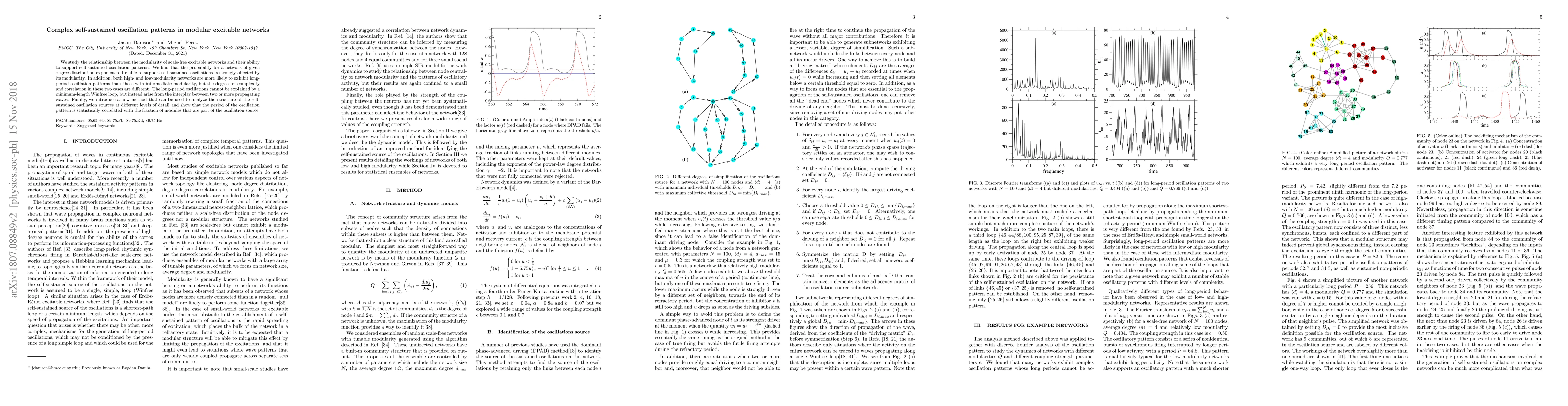 This paper explores how modularity in scale-free excitable networks influences their capacity for self-sustained oscillations, finding that high and low modularity networks favor long-period oscillations of varying complexity. A new method is introduced to analyze oscillation sources, revealing a statistical correlation between oscillation period and the fraction of modules involved.