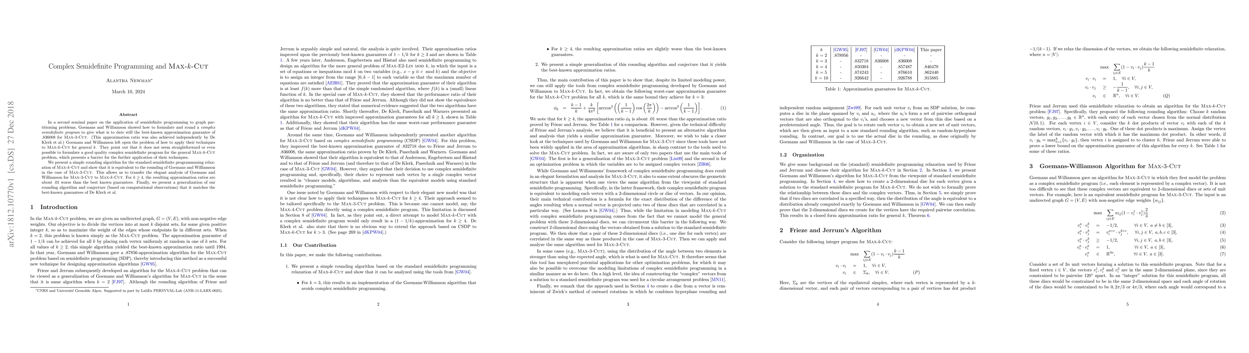 In a second seminal paper on the application of semidefinite programming to graph partitioning problems, Goemans and Williamson showed how to formulate and round a complex semidefinite program to give what is to date still the best-known approximation guarantee of .836008 for Max-$3$-Cut. (This approximation ratio was also achieved independently by De Klerk et al.) Goemans and Williamson left open the problem of how to apply their techniques to Max-$k$-Cut for general $k$. They point out that it does not seem straightforward or even possible to formulate a good quality complex semidefinite program for the general Max-$k$-Cut problem, which presents a barrier for the further application of their techniques. We present a simple rounding algorithm for the standard semidefinite programmming relaxation of Max-$k$-Cut and show that it is equivalent to the rounding of Goemans and Williamson in the case of Max-$3$-Cut. This allows us to transfer the elegant analysis of Goemans and Williamson for Max-3-Cut to Max-$k$-Cut. For $k \geq 4$, the resulting approximation ratios are about $.01$ worse than the best known guarantees. Finally, we present a generalization of our rounding algorithm and conjecture (based on computational observations) that it matches the best-known guarantees of De Klerk et al.
