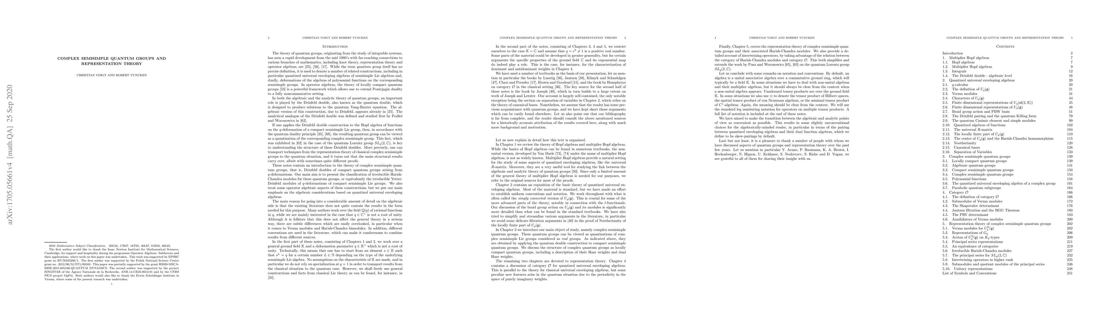Summary: This paper introduces complex semisimple quantum groups, focusing on classifying irreducible Harish-Chandra modules. It provides background on quantized universal enveloping algebras and explores links to the analytical theory of locally compact quantum groups.