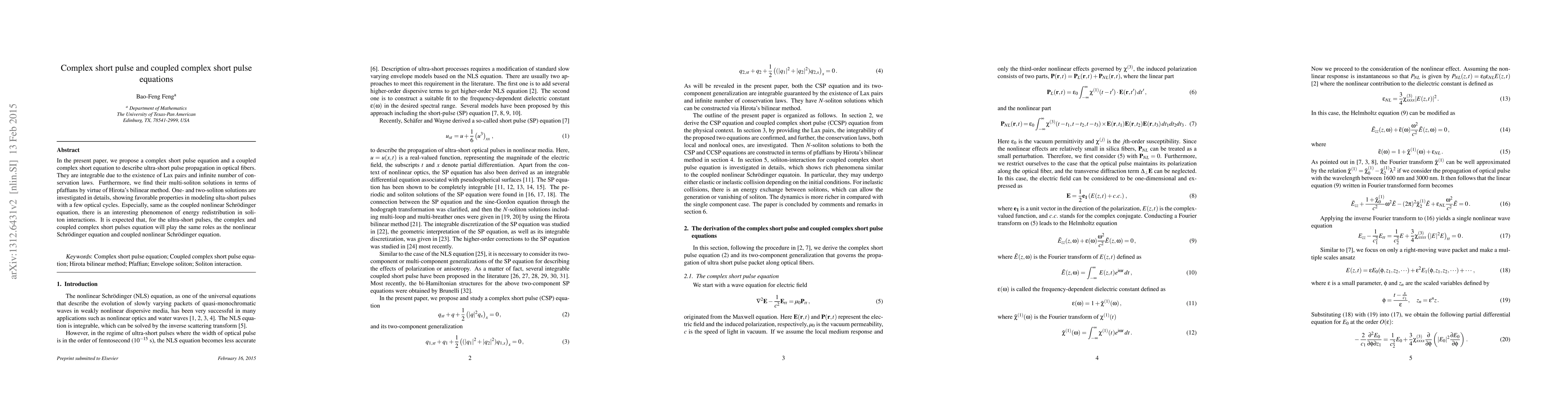 This paper introduces integrable complex short pulse and coupled complex short pulse equations to model ultra-short pulse propagation in optical fibers, demonstrating their multi-soliton solutions and inelastic soliton interactions, which have potential applications in optical communications.