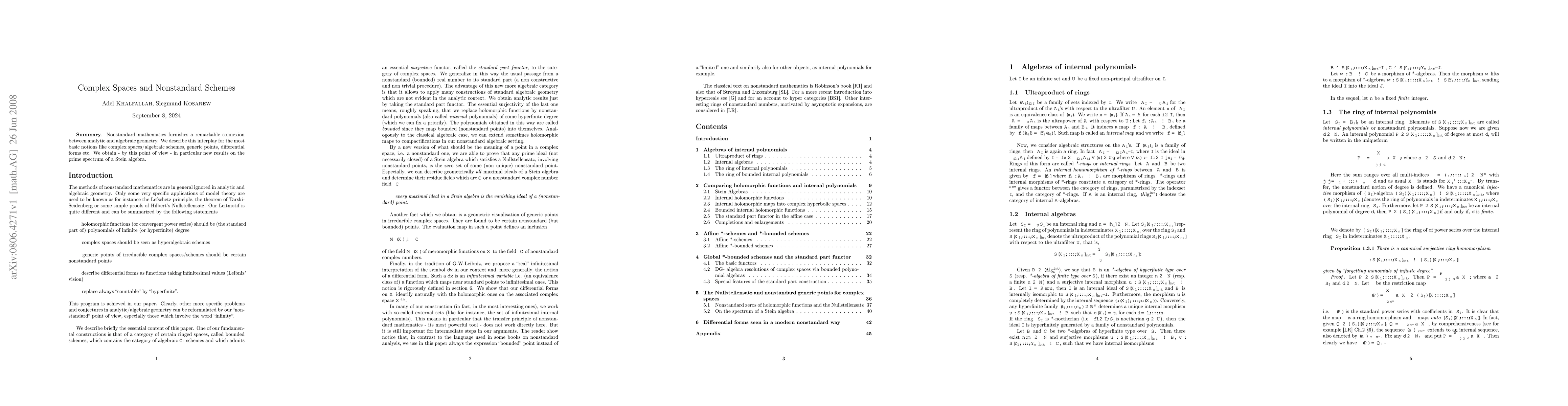 Researchers apply nonstandard mathematics to complex spaces, creating a new category of algebraic schemes that bridge between complex spaces and usual algebraic schemes. They show prime ideals in Stein algebras come from nonstandard points, with implications for differential forms, generic points, and meromorphic functions.