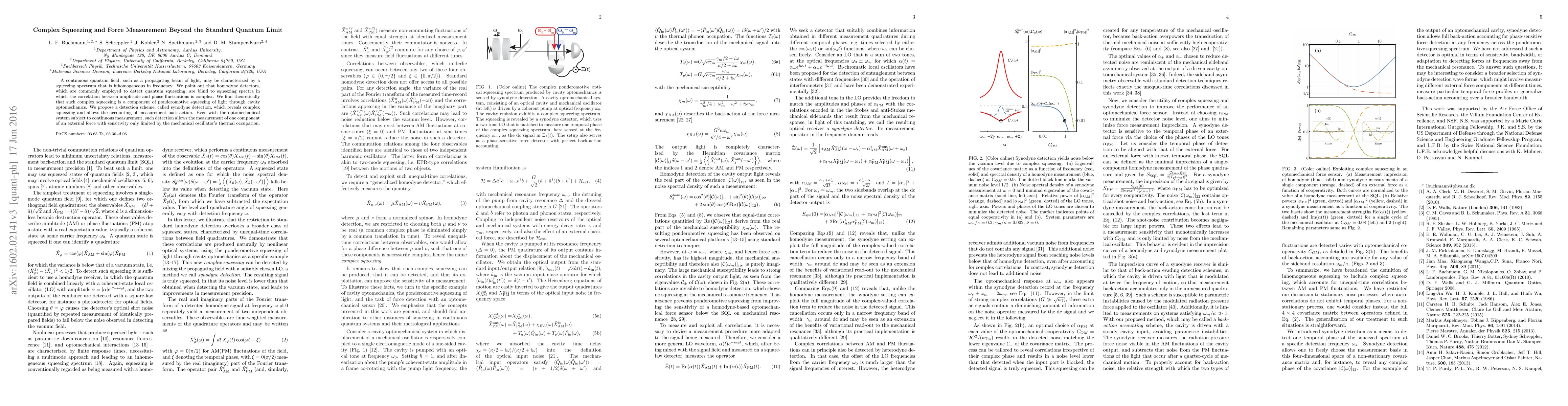 This paper discusses the detection of complex squeezing in quantum fields, which is not visible to standard homodyne detectors, and proposes a new detection method called synodyne detection. This method enables measurement of force beyond the standard quantum limit by accounting for measurement back-action.