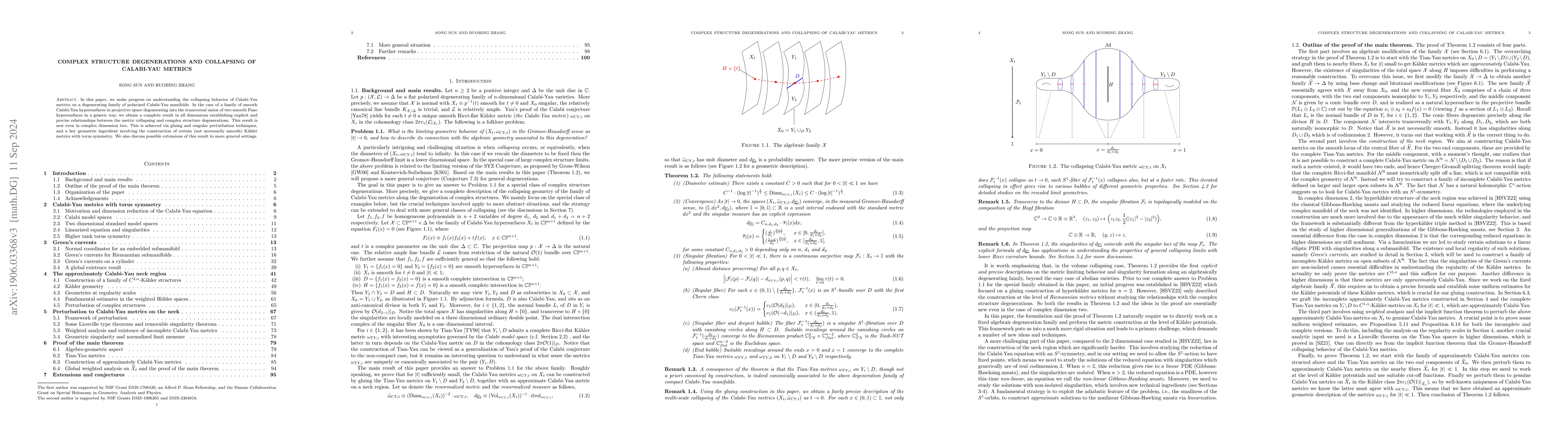 This paper investigates the behavior of collapsing Calabi-Yau metrics in degenerating families of polarized Calabi-Yau manifolds, establishing precise relationships between metric collapse and complex structure degenerations, particularly in the case of smooth hypersurfaces. Key techniques involve gluing, singular perturbations, and construction of certain torus-symmetric Kähler metrics.