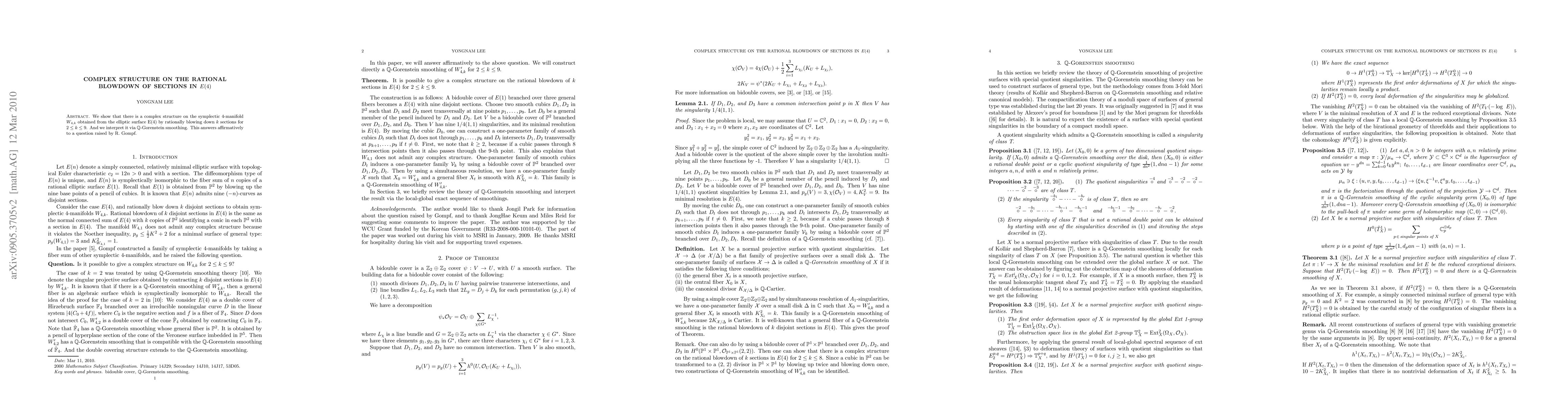 We show that there is a complex structure on the symplectic 4-manifold $W_{4, k}$ obtained from the elliptic surface E(4) by rationally blowing down $k$ sections for $2\le k\le 9$. And we interpret it via ${\mathbb Q}$-Gorenstein smoothing. This answers affirmatively to a question raised by R. Gompf.