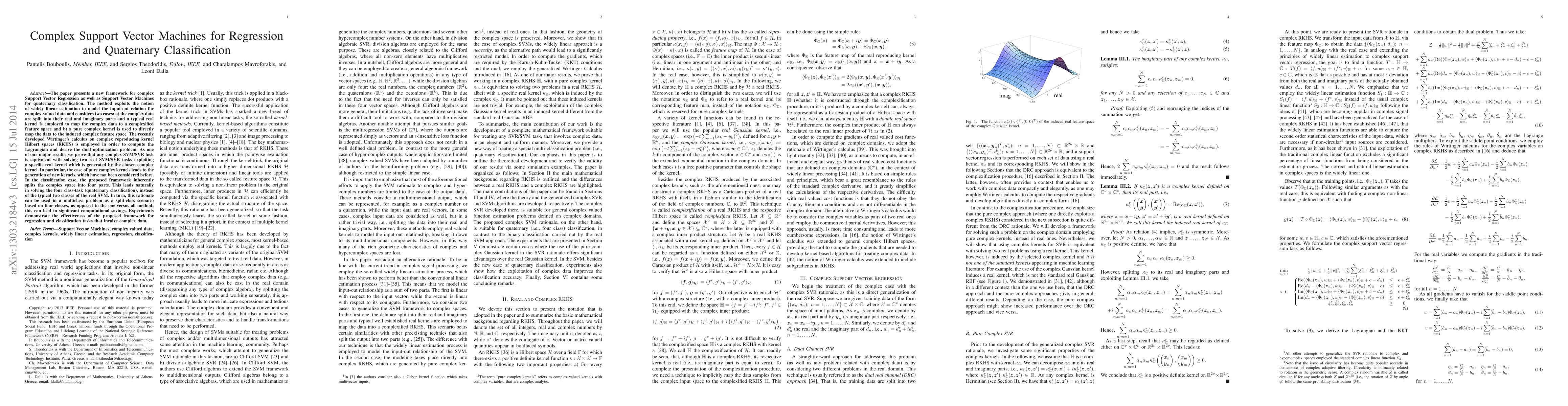 The paper introduces a novel framework for complex Support Vector Regression and Support Vector Machines for quaternary classification, leveraging widely linear estimation and Wirtinger's calculus. It demonstrates that complex SVM/SVR tasks can be equivalently solved using two real SVM/SVR tasks, leading to new kernels and computational savings in multiclass problems.