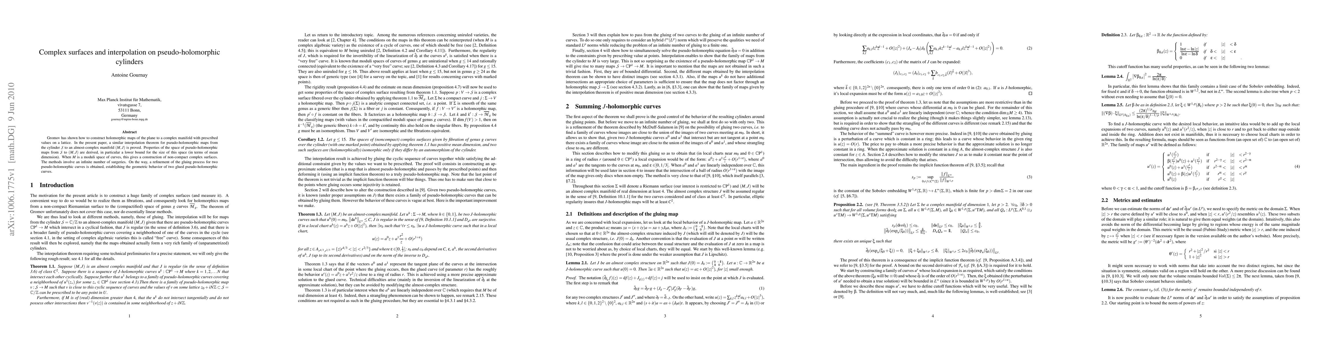 Gromov has shown how to construct holomorphic maps of the plane to a complex manifold with prescribed values on a lattice. In the present paper, a similar interpolation theorem for pseudo-holomorphic maps from the cylinder S to an almost-complex manifold (M,J) is proved. Properties of the space of pseudo-holomorphic maps from S to (M,J) are derived, in particular a lower bound for the size of this space (in terms of mean dimension). When M is a moduli space of curves, this gives a construction of non-compact complex surfaces. The methods involve an infinite number of surgeries. On the way, a refinement of the gluing process for two pseudo-holomorphic curves is obtained, establishing the geometric behavior of two glued pseudo-holomorphic curves.