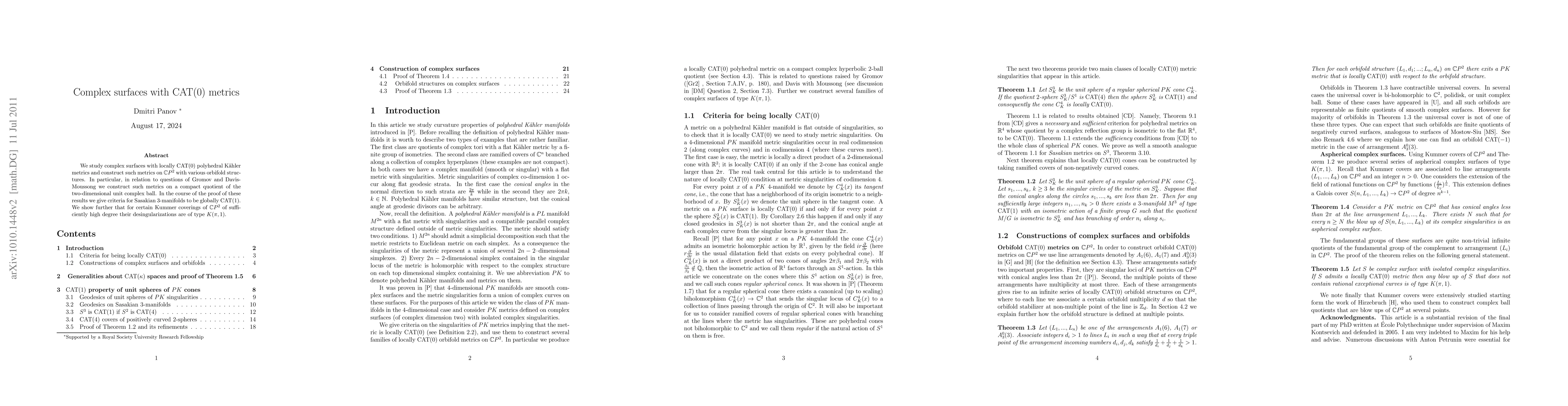 This paper explores complex surfaces equipped with locally CAT(0) polyhedral Kähler metrics, constructing such metrics on CP^2 with diverse orbifold structures. It addresses Gromov and Davis-Moussong's questions by creating metrics on a compact quotient of the two-dimensional unit complex ball, and provides criteria for Sasakian 3-manifolds to be globally CAT(1).