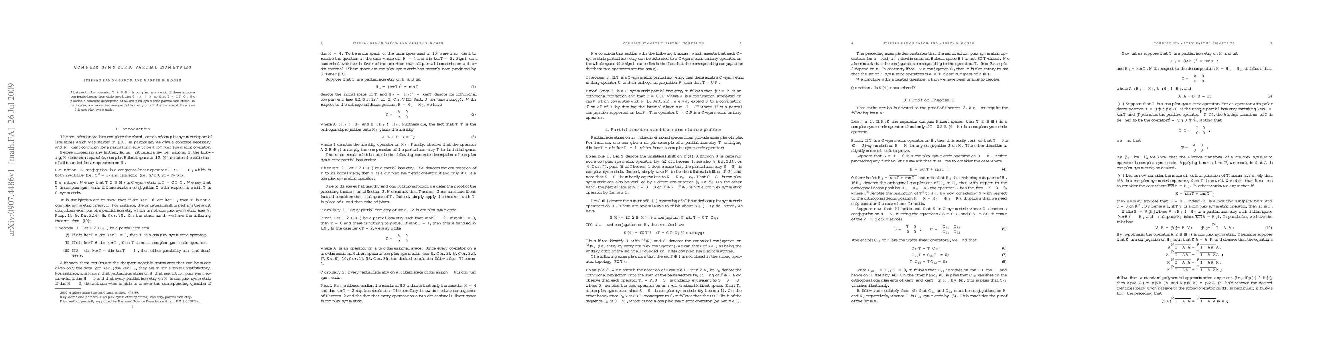 This paper characterizes complex symmetric partial isometries in Hilbert spaces, demonstrating that any partial isometry in spaces of dimension up to four is complex symmetric. The authors provide a detailed description of these operators using a conjugate-linear, isometric involution.