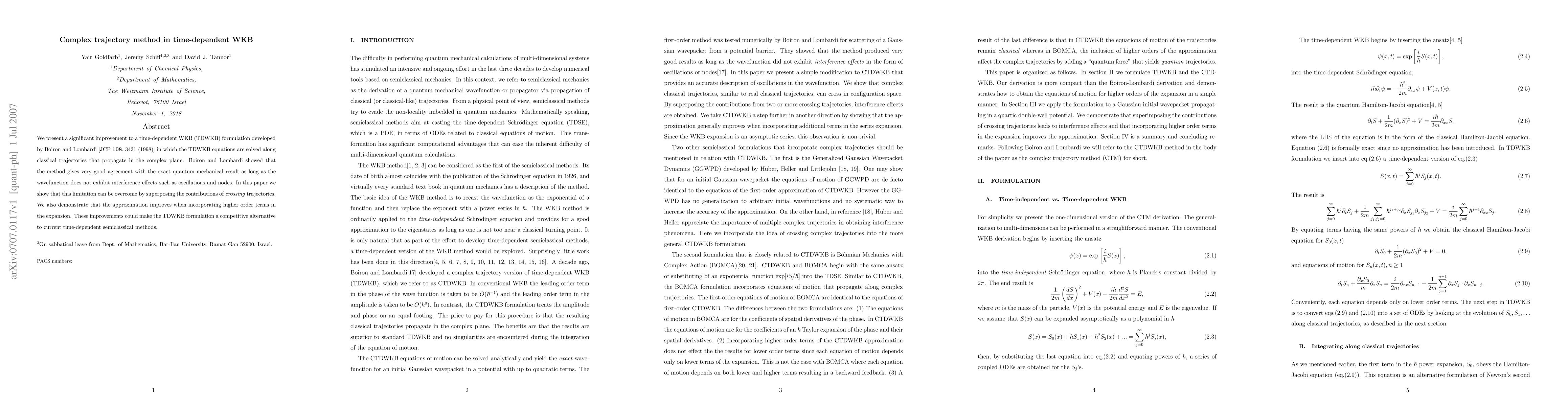 This paper enhances the time-dependent WKB (TDWKB) method by solving its equations along complex-plane trajectories, addressing its prior limitation with wavefunction interference. The authors demonstrate that superposing crossing trajectories and incorporating higher-order terms significantly improves the approximation, positioning TDWKB as a strong competitor to existing semiclassical methods.