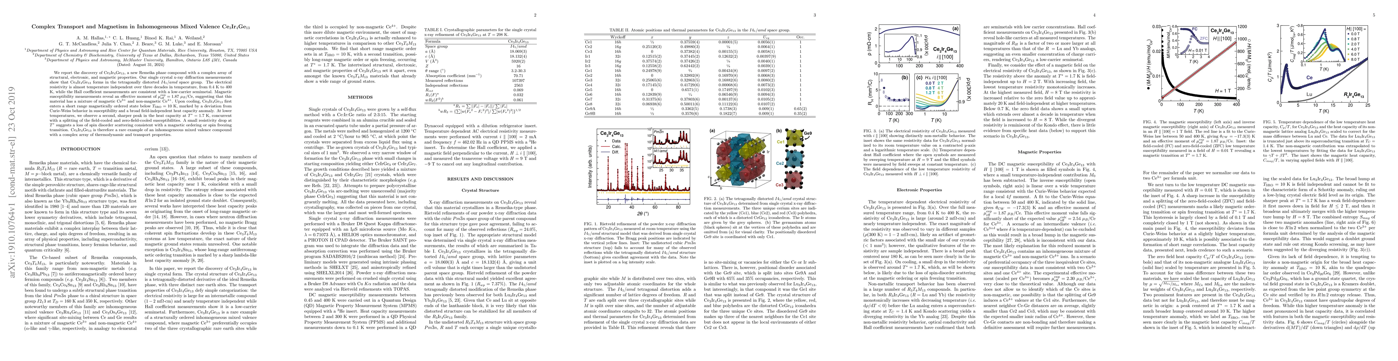 We report the discovery of Ce$_3$Ir$_4$Ge$_{13}$, a new Remeika phase compound with a complex array of structural, electronic, and magnetic properties. Our single crystal x-ray diffraction measurements show that Ce$_3$Ir$_4$Ge$_{13}$ forms in the tetragonally distorted $I4_1/amd$ space group. The electrical resistivity is almost temperature independent over three decades in temperature, from 0.4 K to 400 K, while the Hall coefficient measurements are consistent with a low-carrier semimetal. Magnetic susceptibility measurements reveal an effective moment of $\mu^{\text{exp}}_{\text{eff}} = 1.87 \mu_B$/Ce, suggesting that this material has a mixture of magnetic Ce$^{3+}$ and non-magnetic Ce$^{4+}$. Upon cooling, Ce$_3$Ir$_4$Ge$_{13}$ first enters a short range magnetically ordered state below $T_{\text{SRO}}=10$ K, marked by a deviation from Curie-Weiss behavior in susceptibility and a broad field-independent heat capacity anomaly. At lower temperatures, we observe a second, sharper peak in the heat capacity at $T^* = 1.7$ K, concurrent with a splitting of the field-cooled and zero-field-cooled susceptibilities. A small resistivity drop at $T^*$ suggests a loss of spin disorder scattering consistent with a magnetic ordering or spin freezing transition. Ce$_3$Ir$_4$Ge$_{13}$ is therefore a rare example of an inhomogeneous mixed valence compound with a complex array of thermodynamic and transport properties.