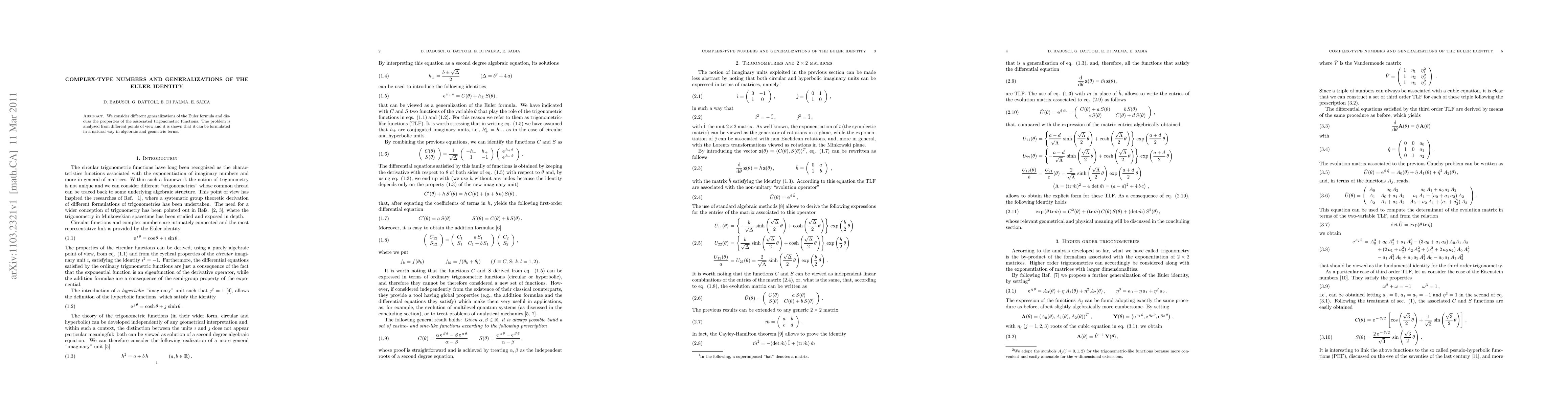 We consider different generalizations of the Euler formula and discuss the properties of the associated trigonometric functions. The problem is analyzed from different points of view and it is shown that it can be formulated in a natural way in algebraic and geometric terms.