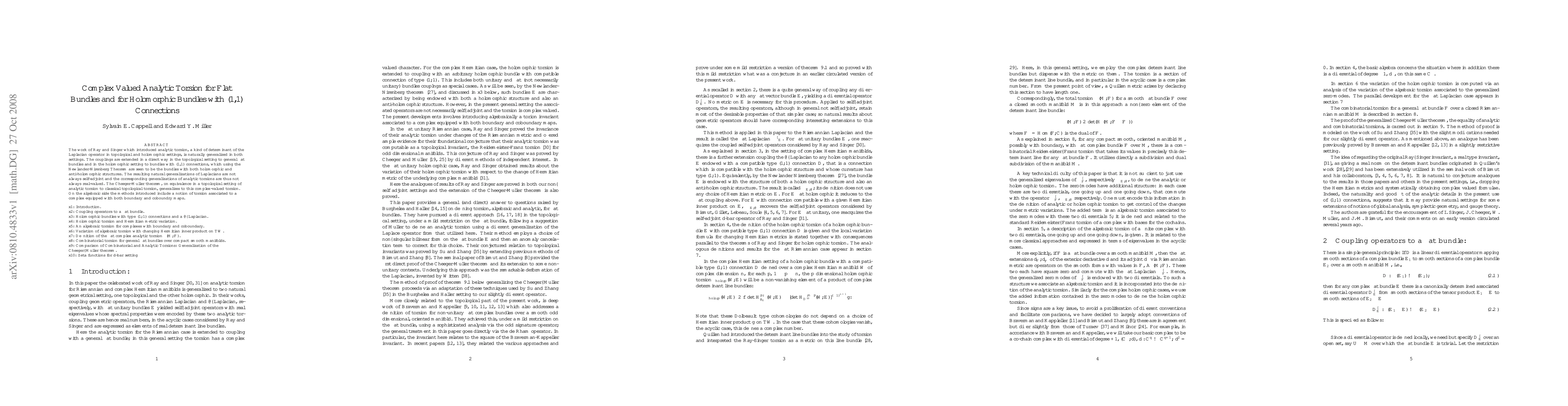 This paper generalizes Ray and Singer's concept of analytic torsion to flat bundles and holomorphic bundles with (1,1) connections, allowing for complex-valued torsions that are not always real-valued. The work extends the couplings and Laplacians in these settings, maintaining a connection to classical topological torsion through the Cheeger-Muller theorem.
