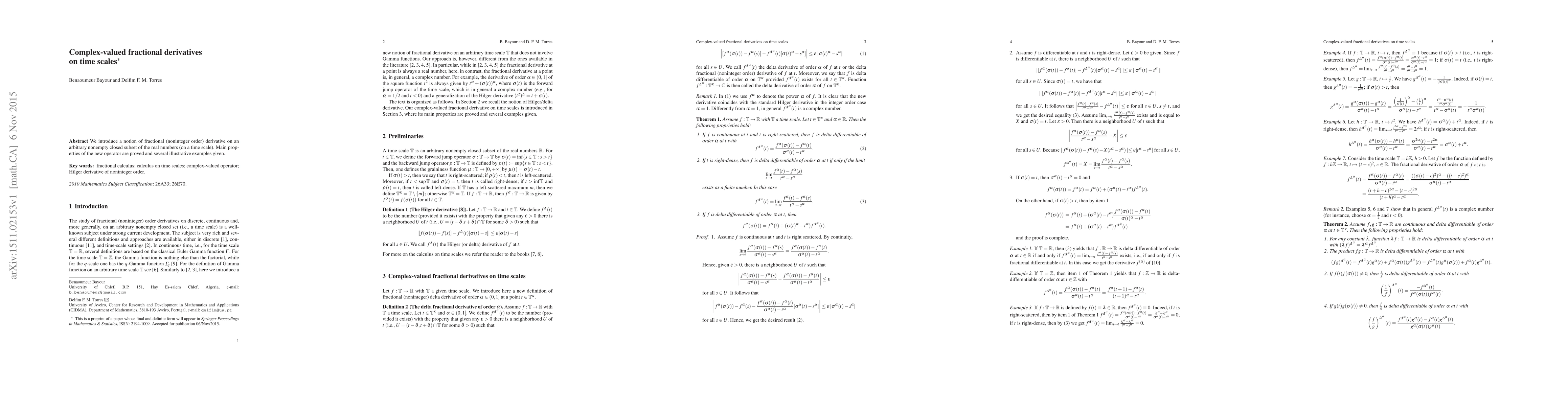 We introduce a notion of fractional (noninteger order) derivative on an arbitrary nonempty closed subset of the real numbers (on a time scale). Main properties of the new operator are proved and several illustrative examples given.