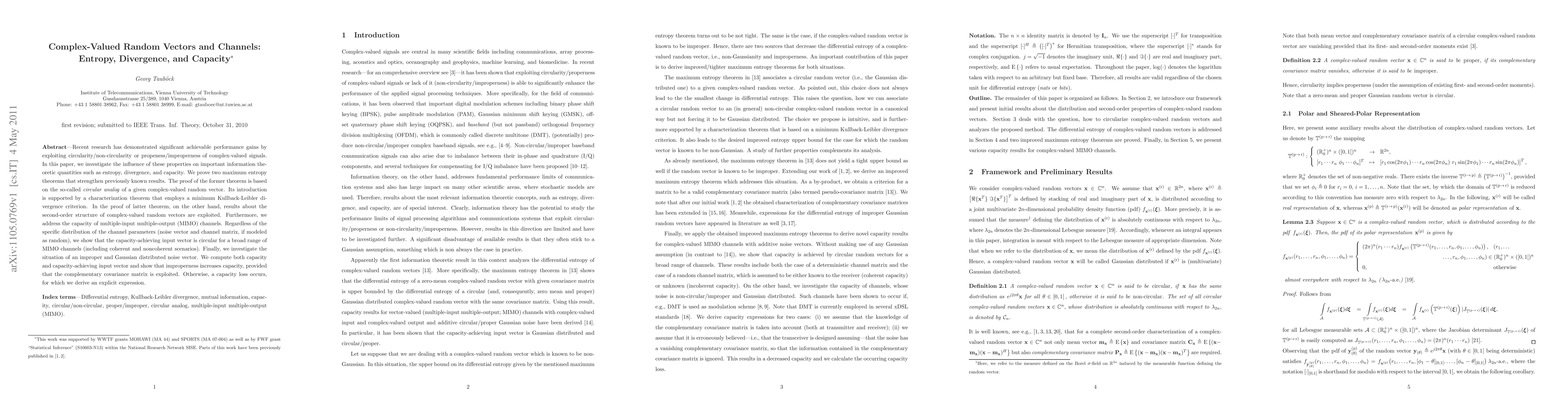 This paper investigates how complex-valued signals' properties influence entropy, divergence, and channel capacity, revealing that circular inputs can achieve maximum capacity in MIMO channels, especially for improper noise vectors.
