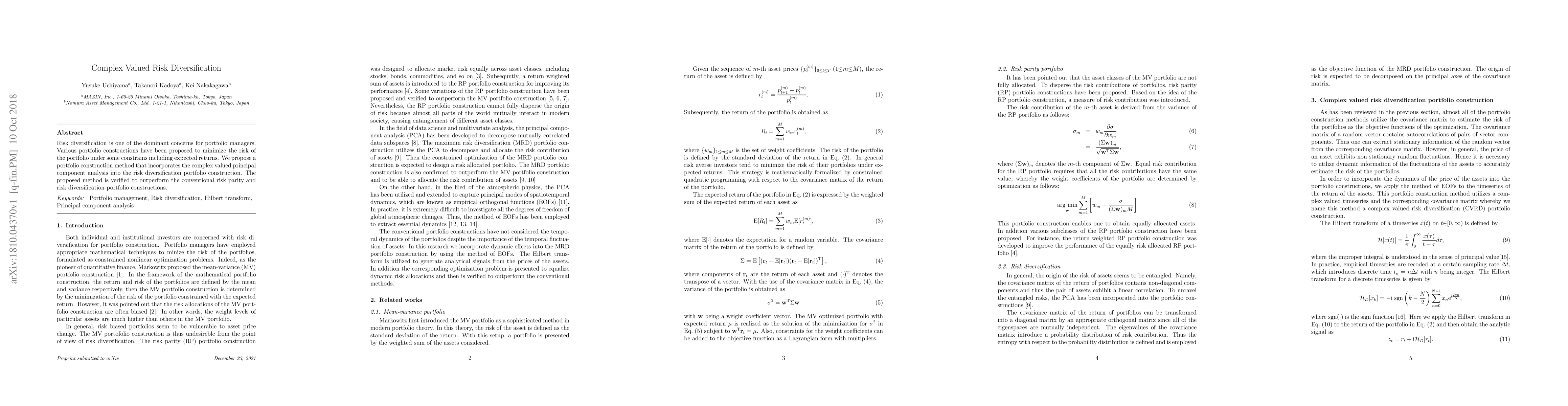 This paper proposes a new portfolio construction method that integrates complex valued principal component analysis for risk diversification, demonstrating superior performance compared to traditional risk parity and diversification strategies.